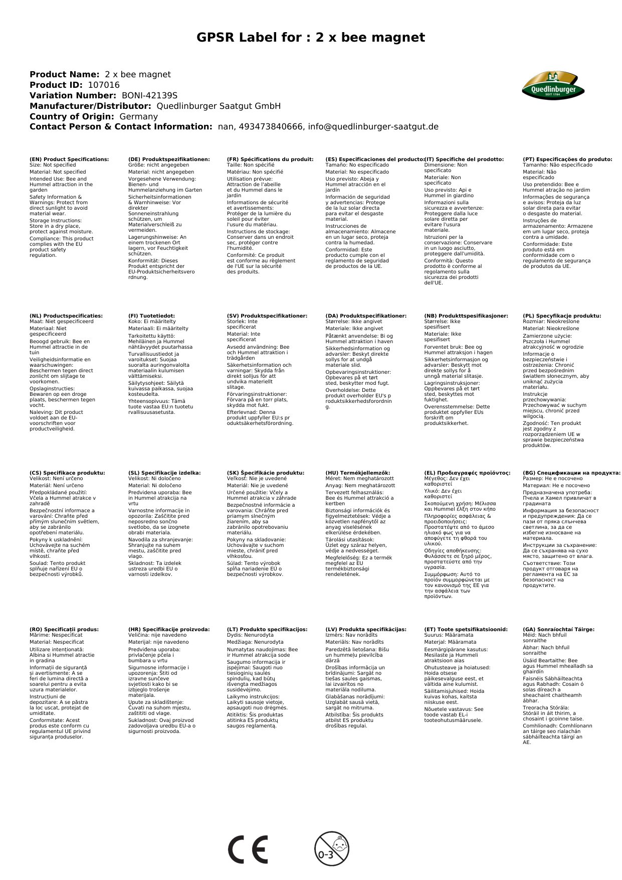 | Anzahl | 2 Stück (Biene und Hummel) |
