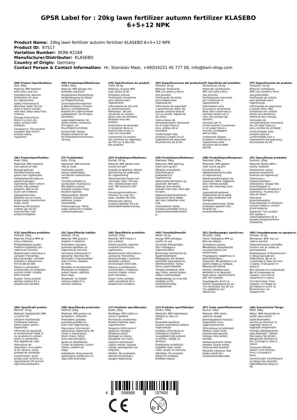 | NPK-Formel | 6+5+12 |