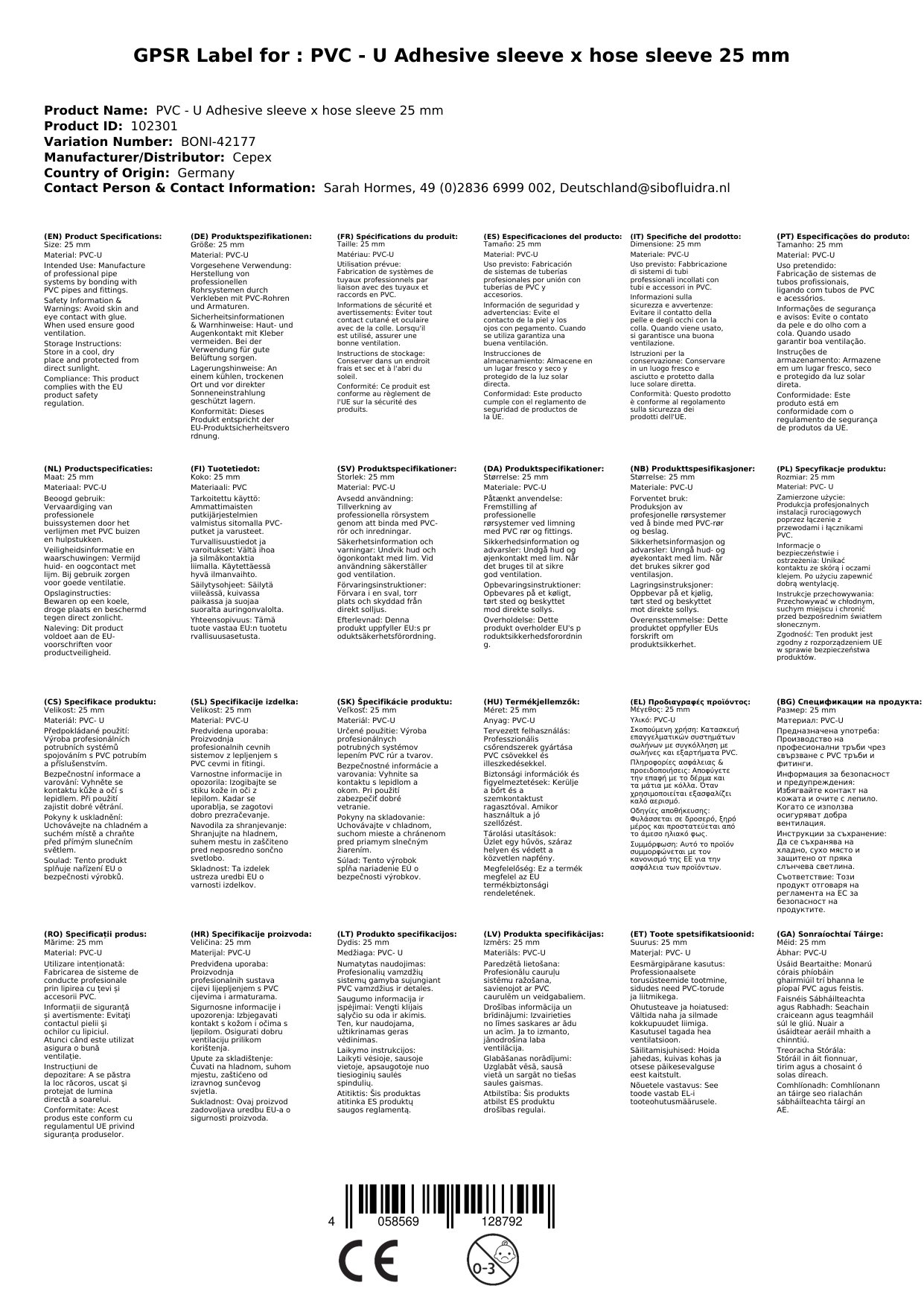 | Material | Hart-PVC / PVC-U / Polyvinylchlorid |