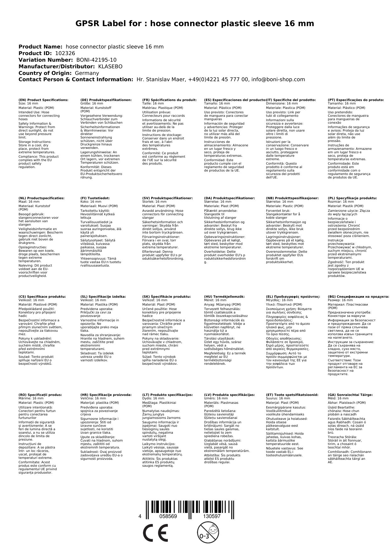 - Robustes Material: Der Schlauchverbinder besteht aus Polyacetal Copolymer, das widerstandsfähig gegen viele Chemikalien ist. Das bedeutet für Dich, dass der Verbinder auch unter anspruchsvollen Bedingungen lange hält.