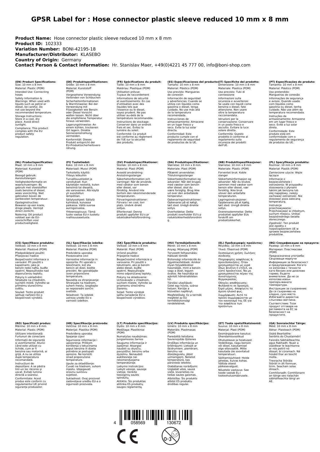 Stellen Sie eine Frage, um mehr über das Produkt zu erfahrenSchlauchverbinder Kunststoff reduziert 10 mm x 8 mm