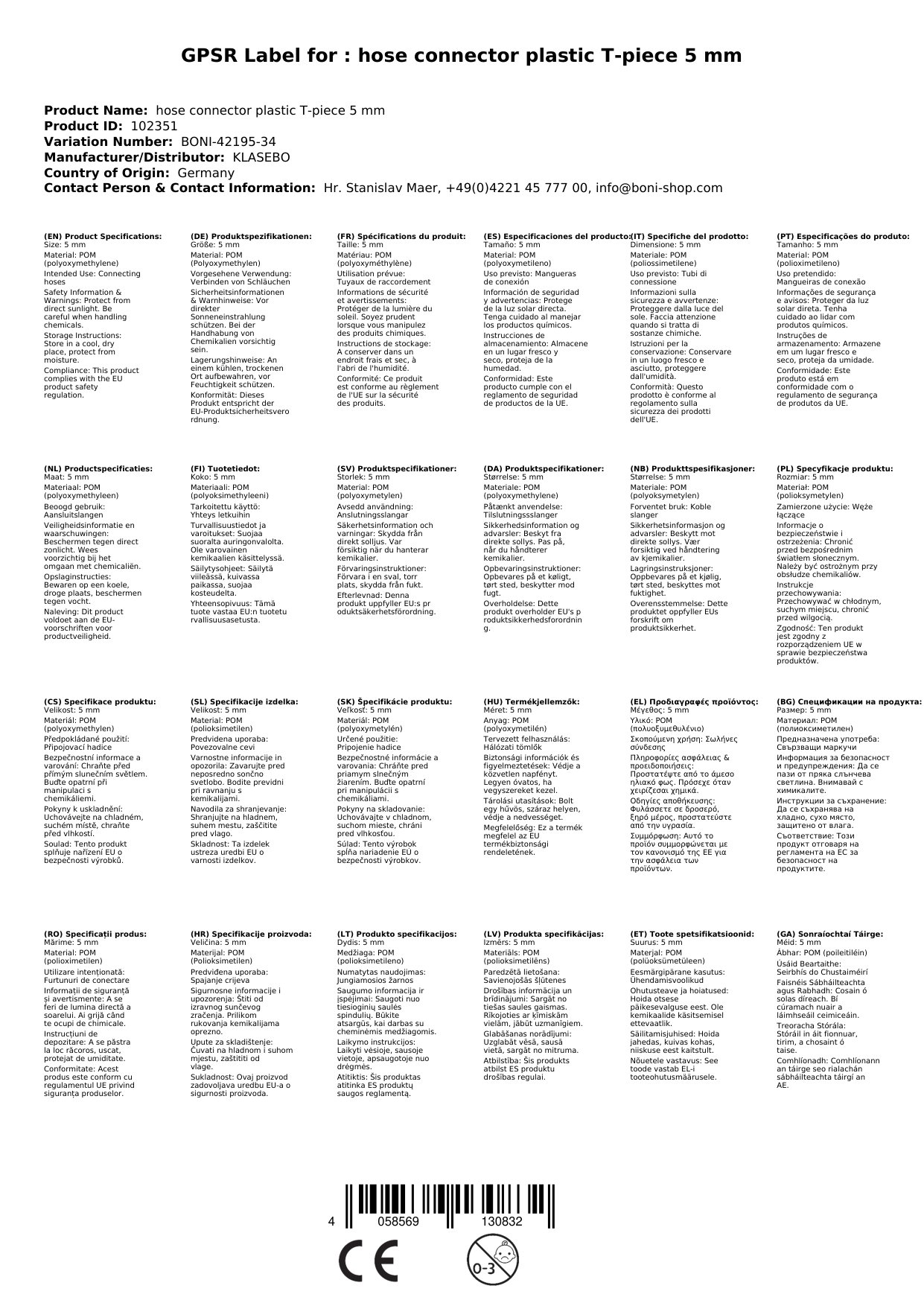 - Materialtyp: Polyacetal Copolymer Standardmaterial Schlauchverbinder