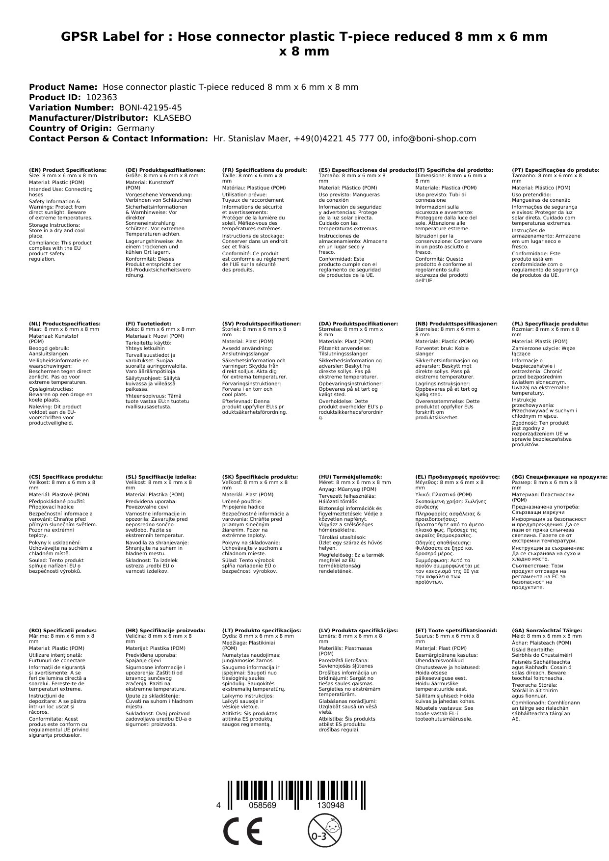 | Schlauchdurchmesser | 8 mm x 6 mm x 8 mm |