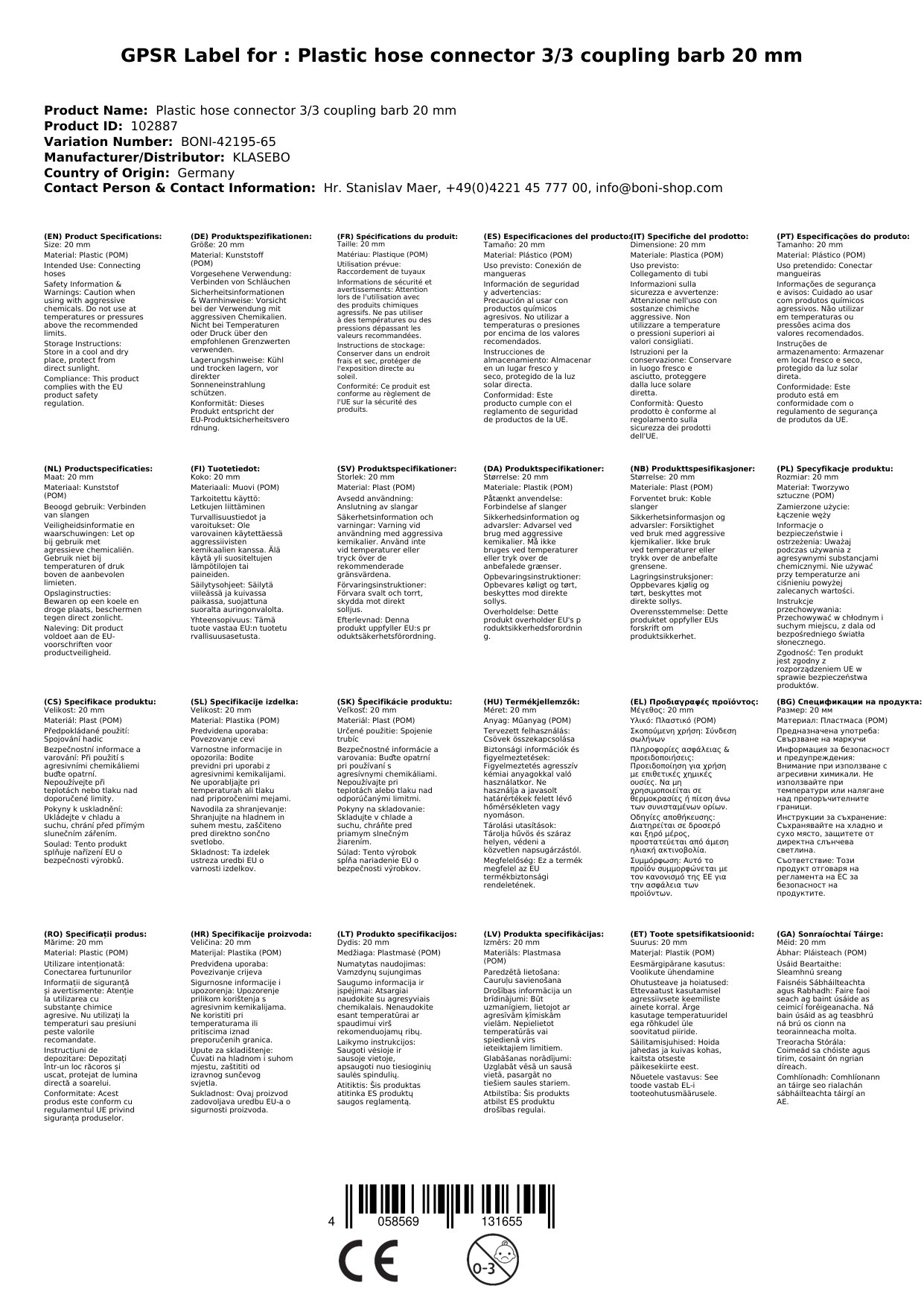 - Robustes Material: Der Schlauchverbinder aus Polyacetal Copolymer (POM) ist beständig gegen Kohlenwasserstoffe, Benzin, Diesel, Öle, Fette und Salzlösungen. Damit ist sichergestellt, dass Ihre Verbindungen dauerhaft halten.