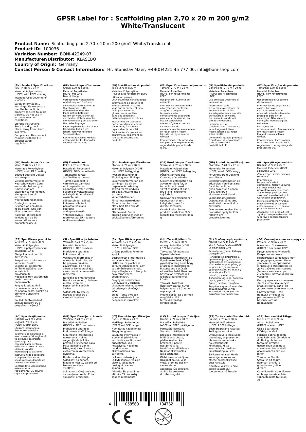Stellen Sie eine Frage, um mehr über das Produkt zu erfahrenGitterplane für Gerüste 2,70 x 20 m 200 g/m² Weiss/Transluzent, Abdeckplane