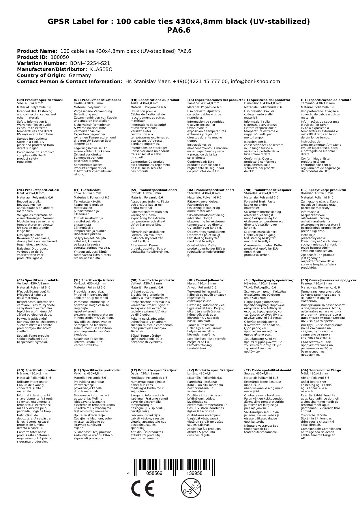 Unsere Kabelbinder bieten Ihnen zuverlässigen Halt und sind vielseitig einsetzbar. Mit einer Länge von 430 mm und einer Breite von 4,8 mm eignen sie sich ideal zum Bündeln von Kabeln und Leitungen. Die UV-Beständigkeit sorgt dafür, dass sie auch im Außenbereich lange halten. Warum das für Sie wichtig ist: Sie erhalten langlebige Kabelbinder, die Ihre Anwendungen sicher und zuverlässig unterstützen.