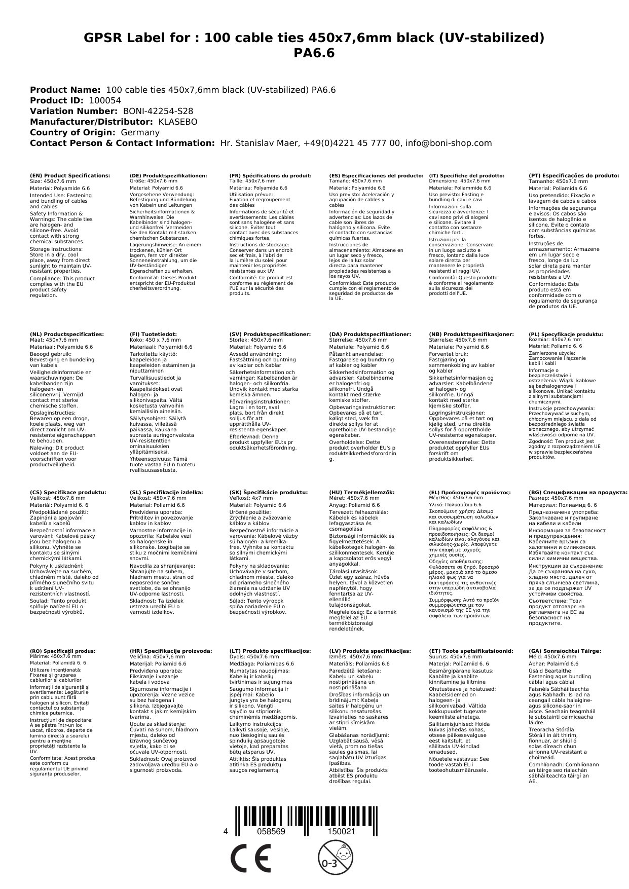 Нашите кабелни връзки 450x7,6мм са проектирани да отговорят на вашите нужди за закрепване. Те са изработени от здрав полиамид PA6.6 и са UV стабилизирани, което ги прави подходящи за употреба на открито. Черният цвят ги прави дискретни и подходящи за различни приложения. С висока якост на опън, те осигуряват надеждно закрепване на вашите материали. Тези характеристики ви дават увереност, че вашите връзки ще издържат на времето и на различните условия.