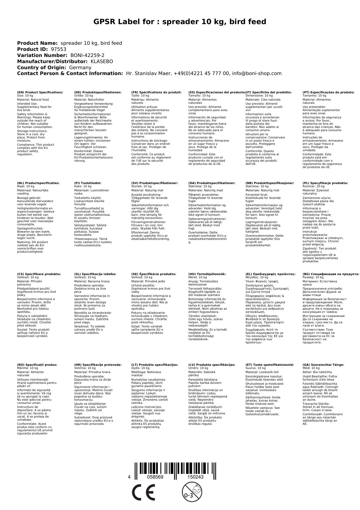 | Ingredients | Maize, Wheat, Sunflower Seeds, Sorghum, Barley, White Millet, Gold Millet, Egyptian Darisaat, Striped Sunflower Seeds, Canary Seed, Linseed, Broken Peas, Safflower, Black Rapeseed |