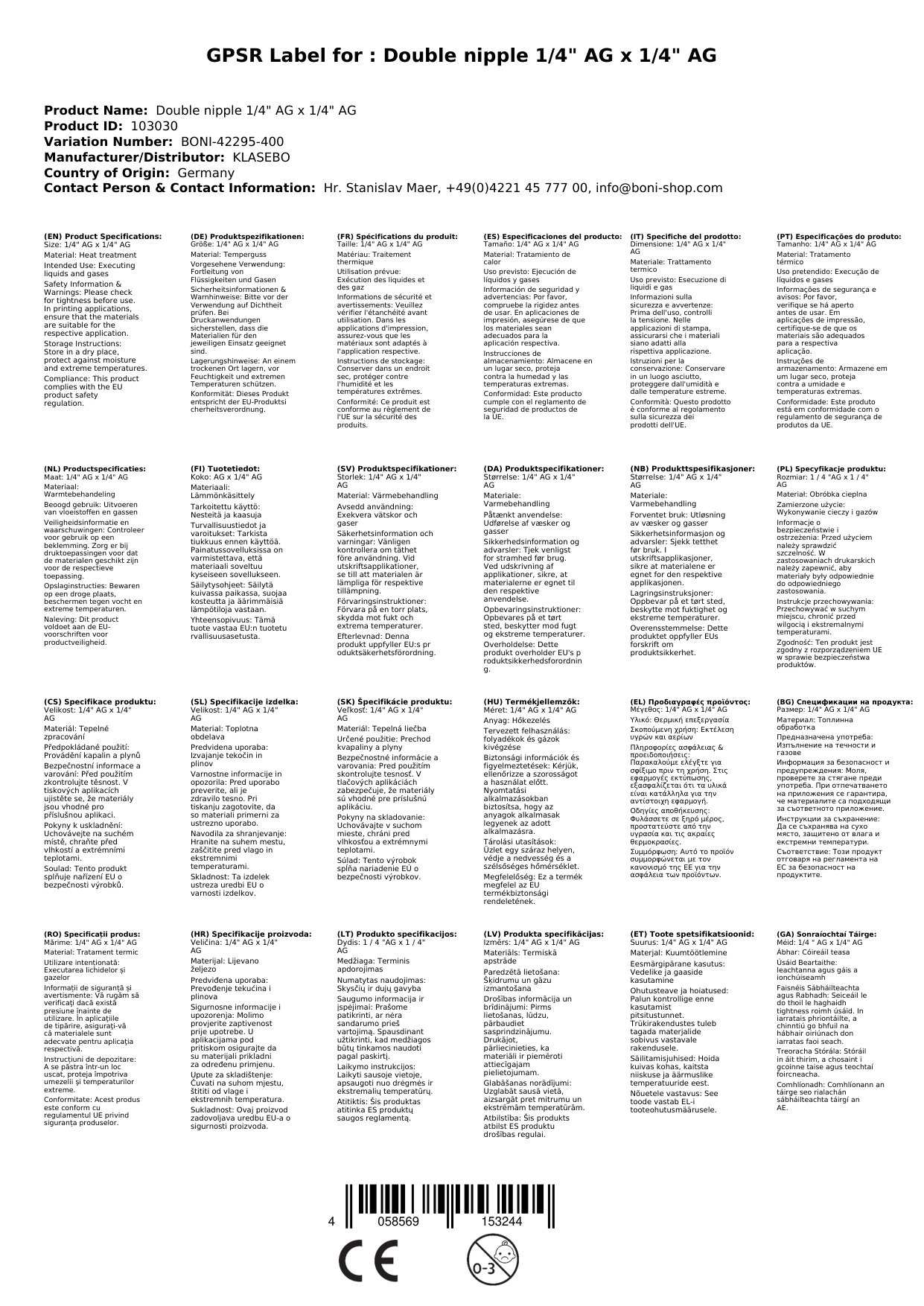 | Gewindegröße | 1/4 Zoll AG x 1/4 Zoll AG |