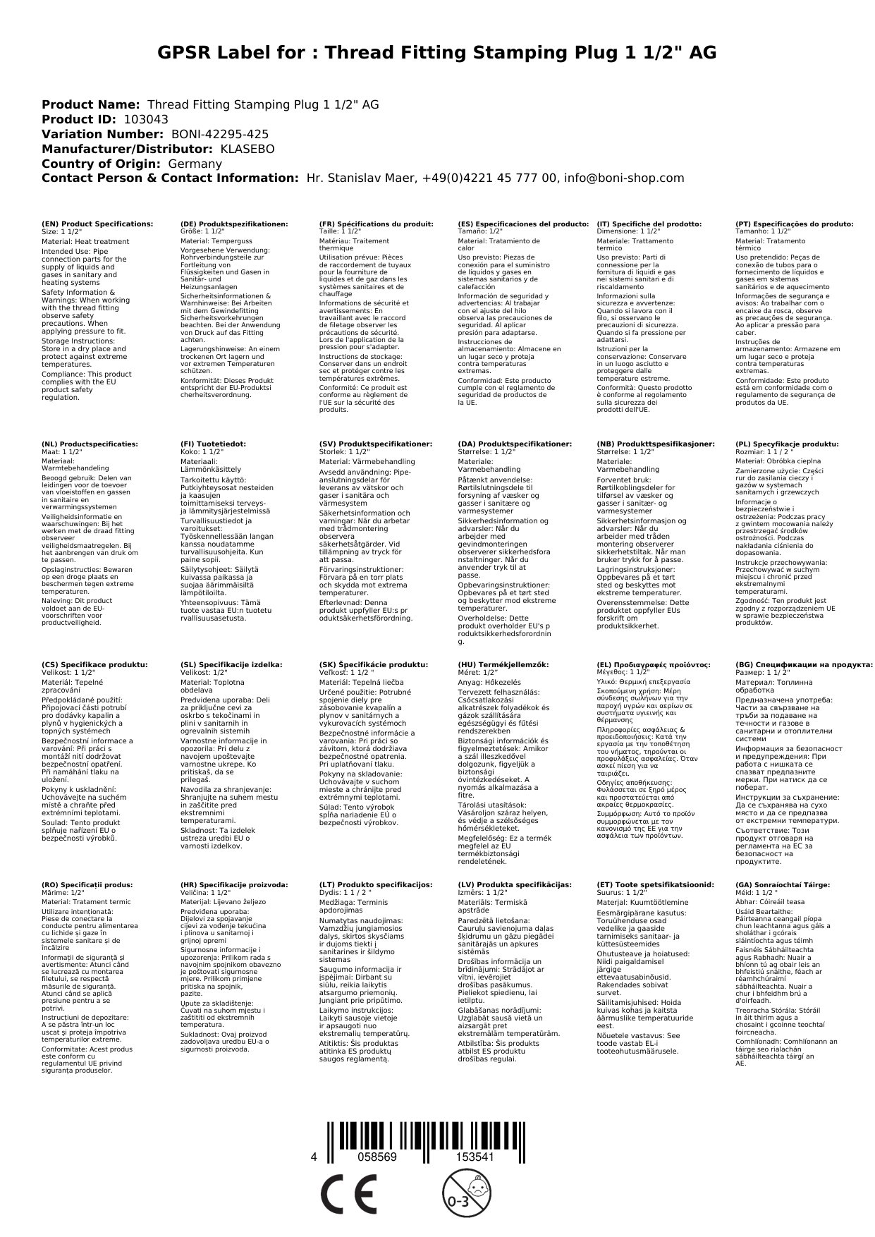 - Hohe Belastbarkeit: Der Stopfen hält hohen Drücken und Temperaturen stand, sodass Sie ihn auch in anspruchsvollen Umgebungen einsetzen können.