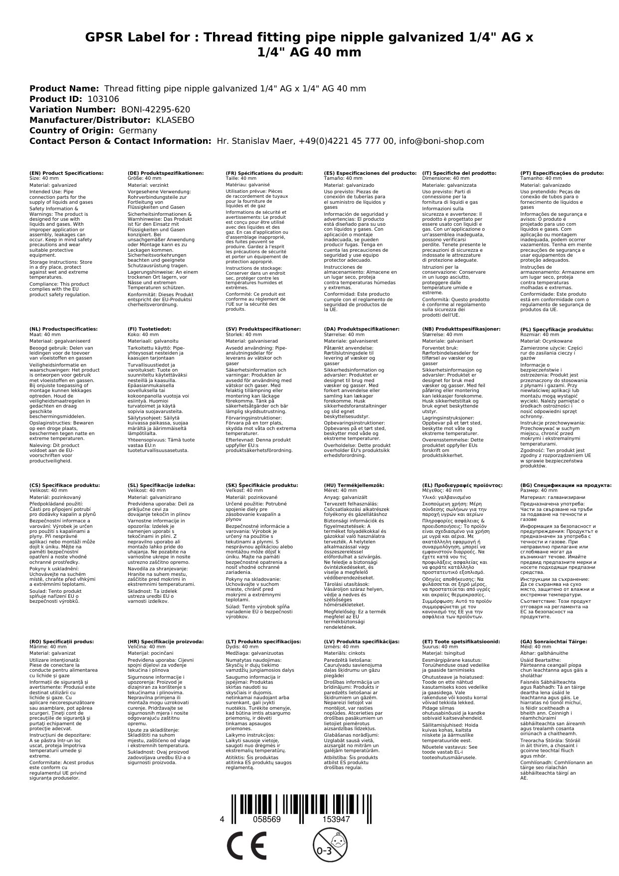 Gewindefitting Rohrnippel verzinkt 1/4" AG x 1/4" AG 40 mm