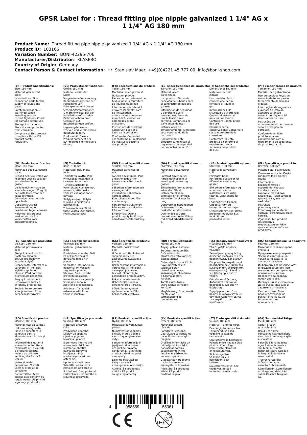 Der Rohrnippel ist nicht speziell für Trinkwasseranwendungen zertifiziert. Bitte prüfen Sie die geltenden Vorschriften für Trinkwasserinstallationen.