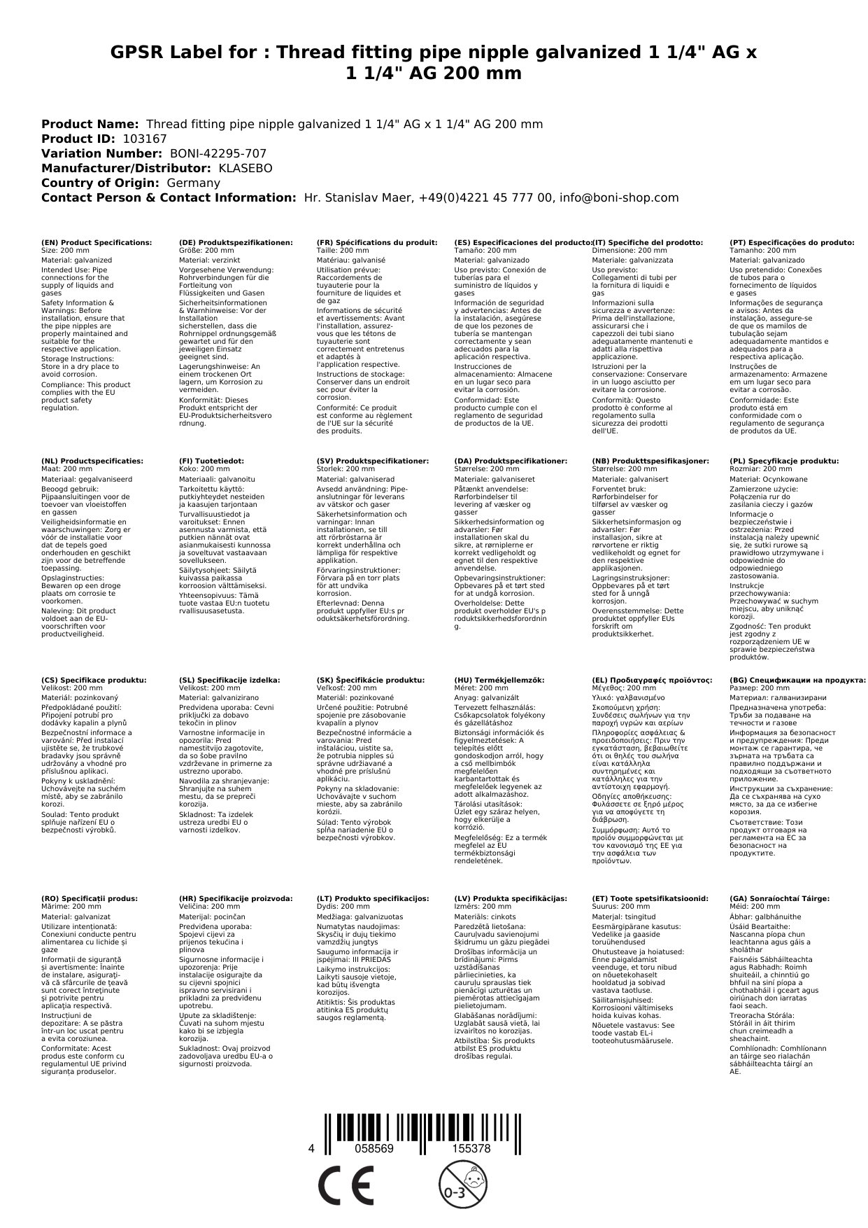 Gewindefitting Rohrnippel verzinkt 1 1/4" AG x 1 1/4" AG 200 mm