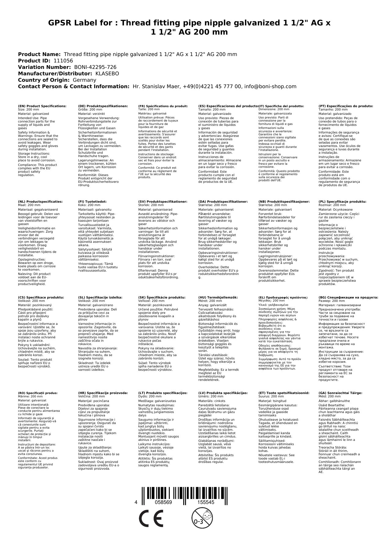 Der Rohrnippel ist nicht speziell für Trinkwasseranwendungen zertifiziert. Bitte verwende dafür geeignete Fittings.