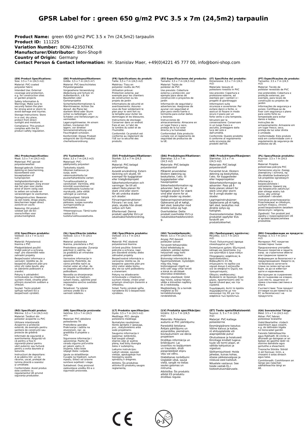 Stellen Sie eine Frage, um mehr über das Produkt zu erfahrenPVC Plane grün 650 g/m², 3,5 x 7m (24,5m²), wasserdicht, reißfest, LKW Plane