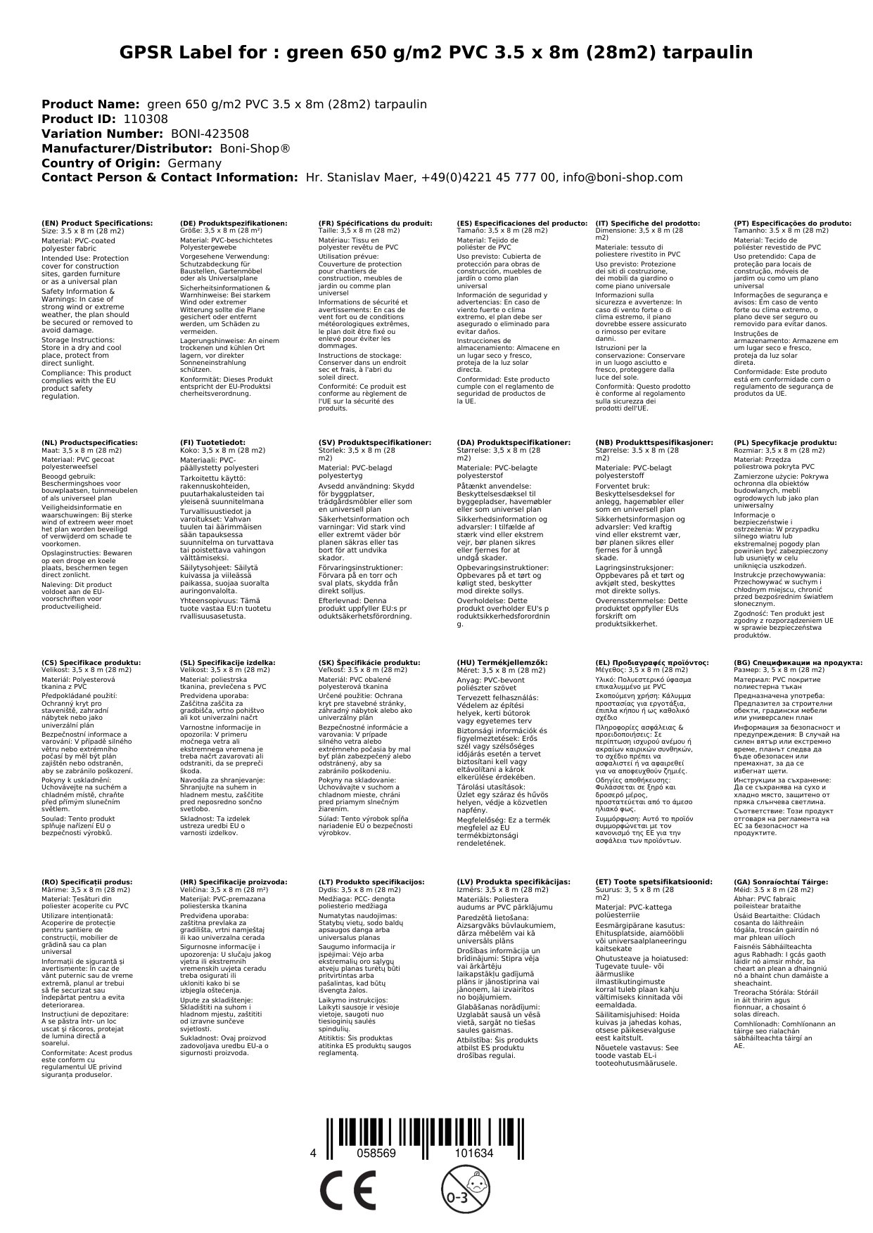 Stellen Sie eine Frage, um mehr über das Produkt zu erfahrenPVC Plane, Abdeckplane grün 650 g/m², 3,5 x 8m (28m²), wasserdicht, reißfest