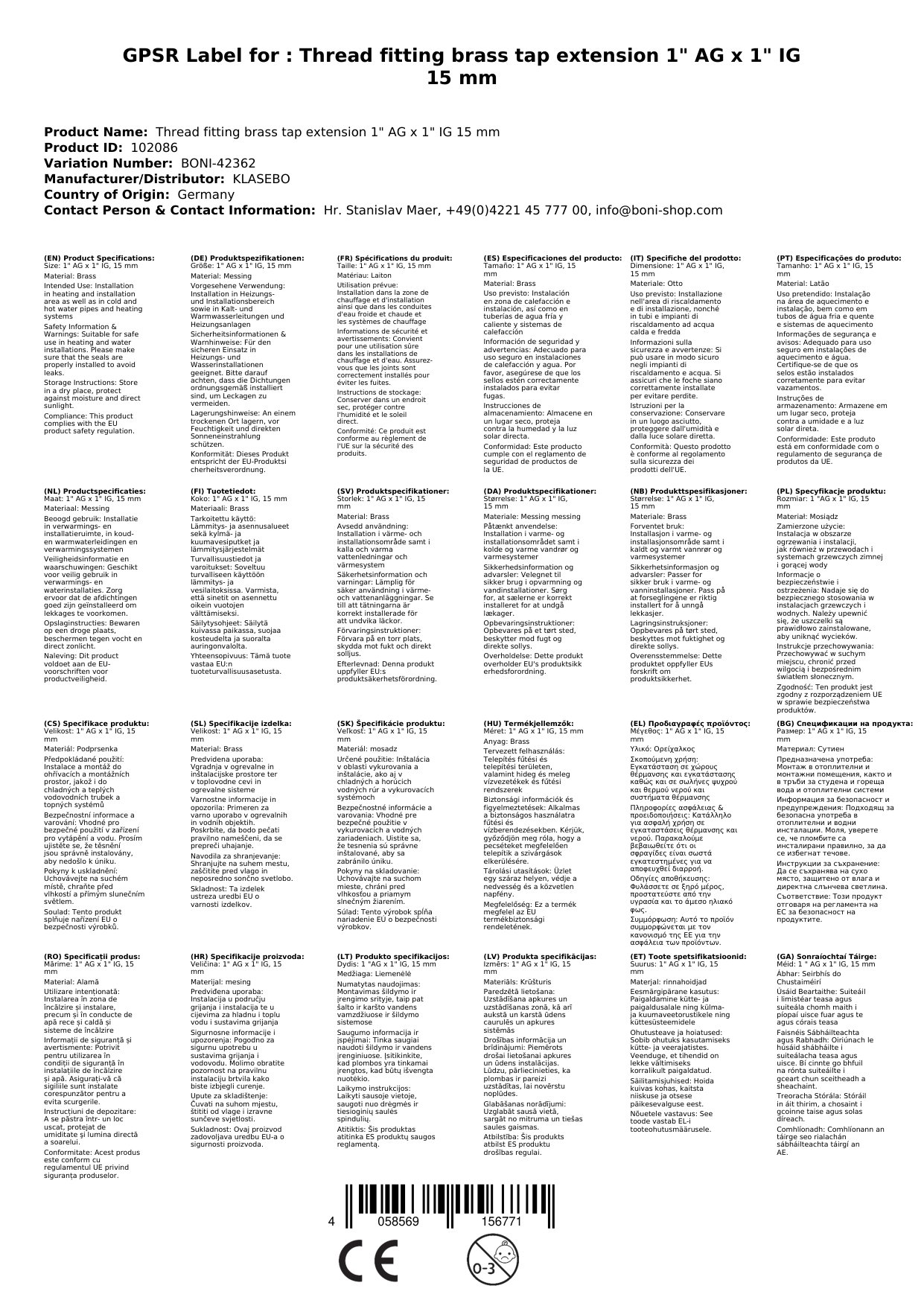 Die Messing Hahnverlängerung ist für Kalt- und Warmwasserleitungen geeignet, jedoch nicht für Salzwasser oder chlorhaltiges Wasser.