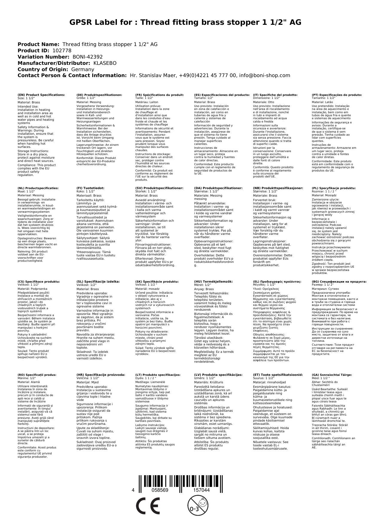 Messing Stopfen, Gewinde Stopfen 1 1/2 Zoll, Boni-Shop24