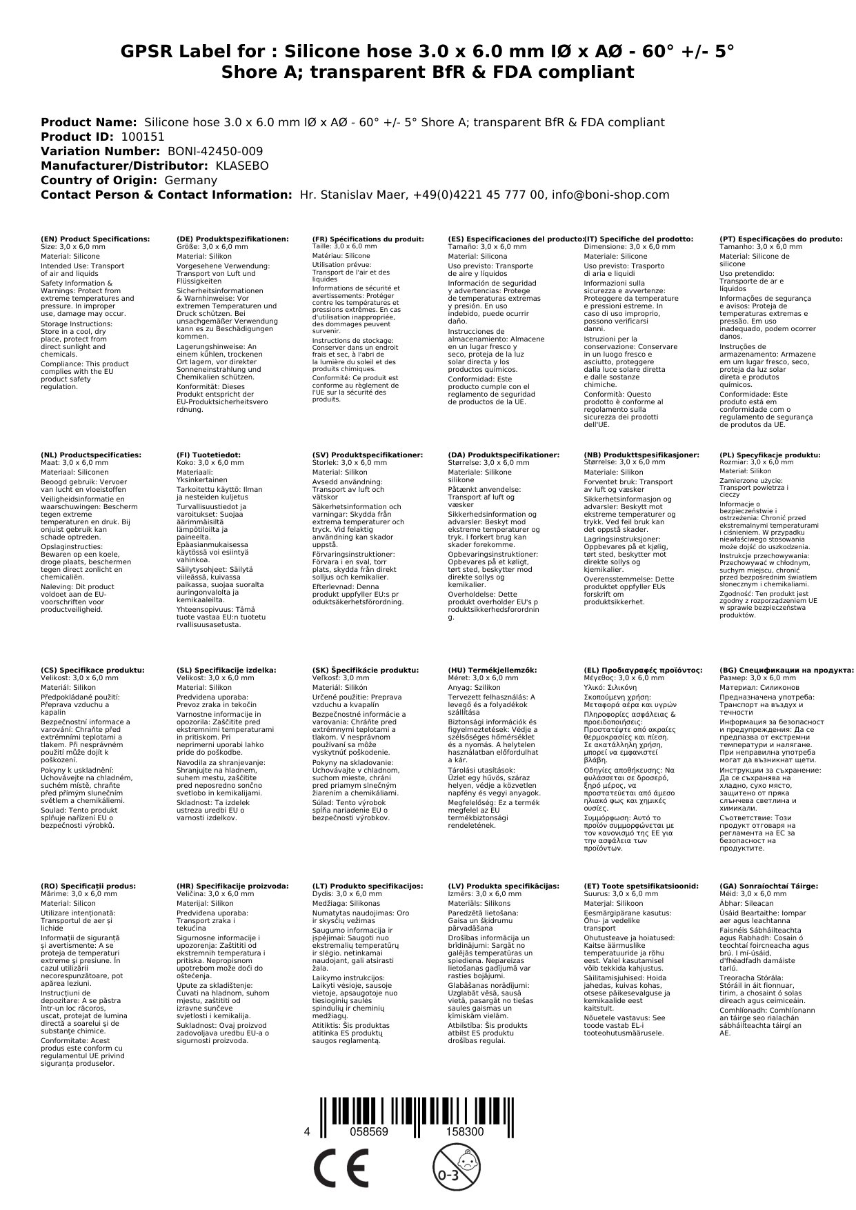Stellen Sie eine Frage, um mehr über das Produkt zu erfahrenSilikonschlauch 3,0 x 6,0 mm IØ x AØ - 60° +/- 5° Shore A; transparent BfR & FDA konform