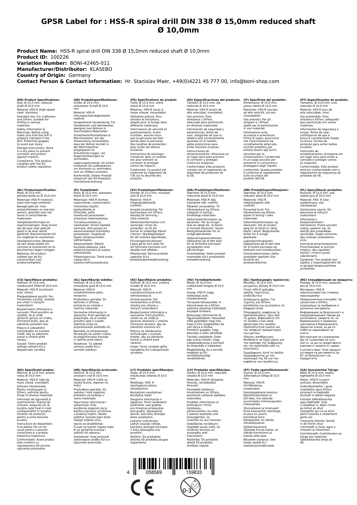 Spiralbohrer 15mm, HSS Spiralbohrer, DIN 338