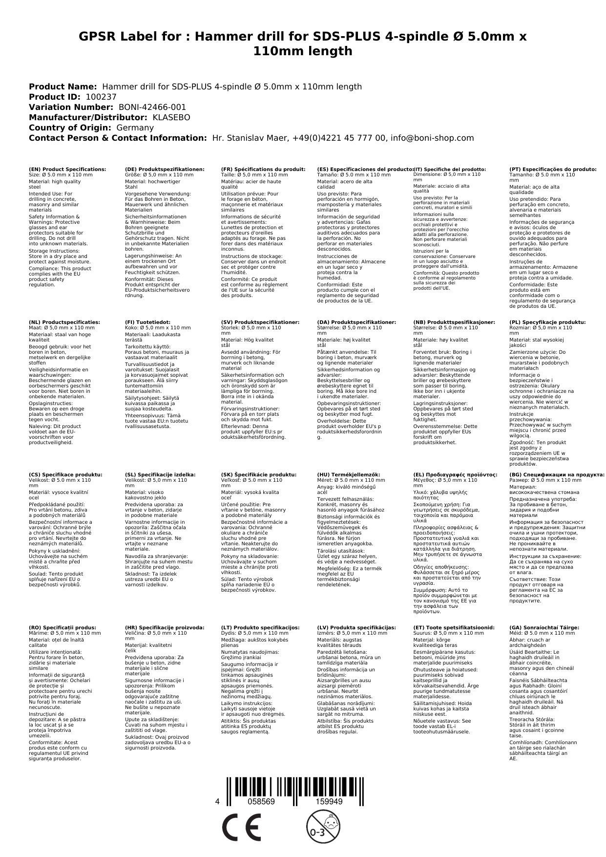 Unser Hammerbohrer bietet Ihnen zuverlässige Bohrungen. Mit einem Durchmesser von 5,0mm und einer Länge von 110mm ist er ideal für präzise Arbeiten. Der 4-Schneider sorgt für eine effiziente Bohrmehlabfuhr. Warum das für Sie wichtig ist: Sie erzielen schnellere und sauberere Bohrergebnisse.
