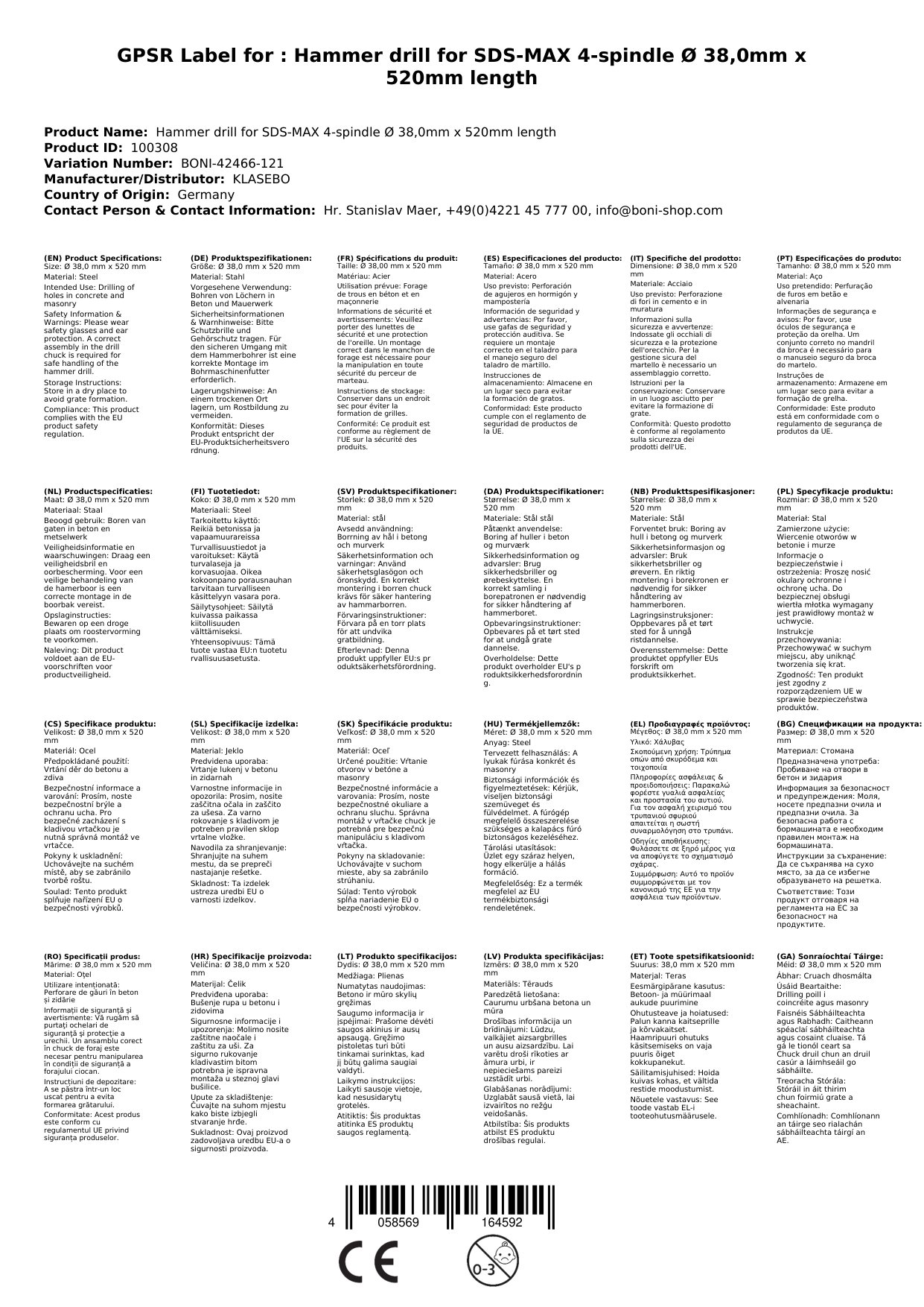 | 38 mm | 520 mm | SDS Max | Hartmetall | 4 |