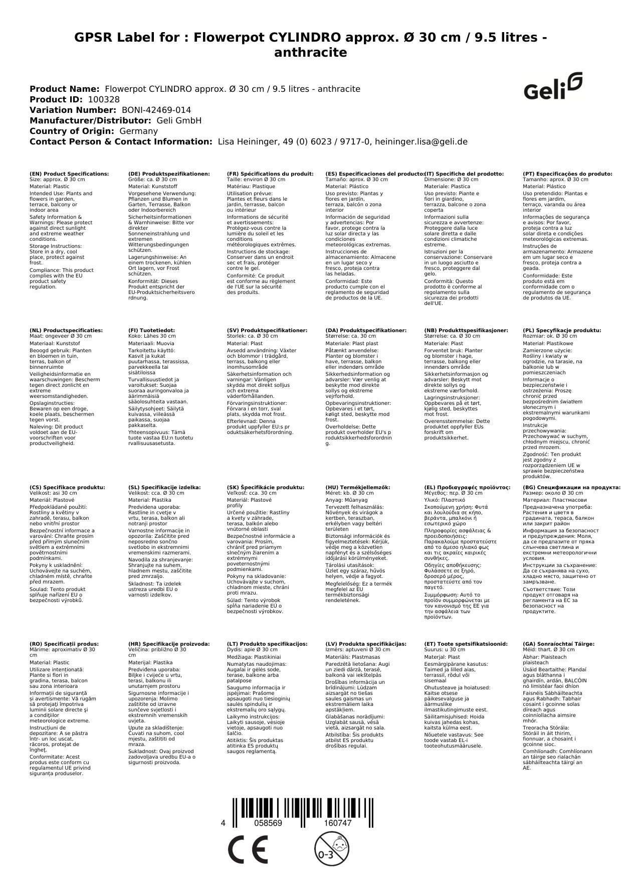 Blumentopf, Pflanztopf CYLINDRO, anthrazit, Ø 30cm, 9.5 Liter