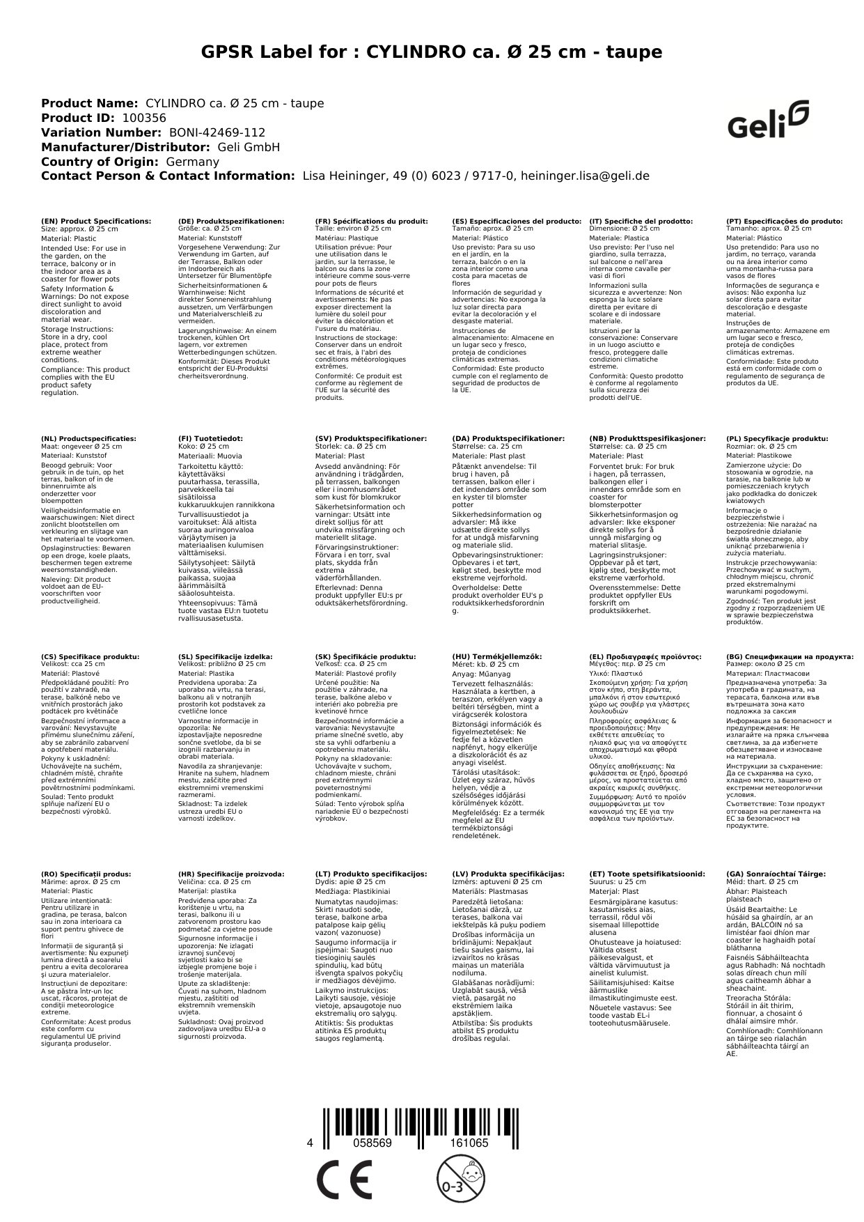 Blumentopfuntersetzer, Pflanzuntersetzer CYLINDRO, ca. Ø 25cm, taupe