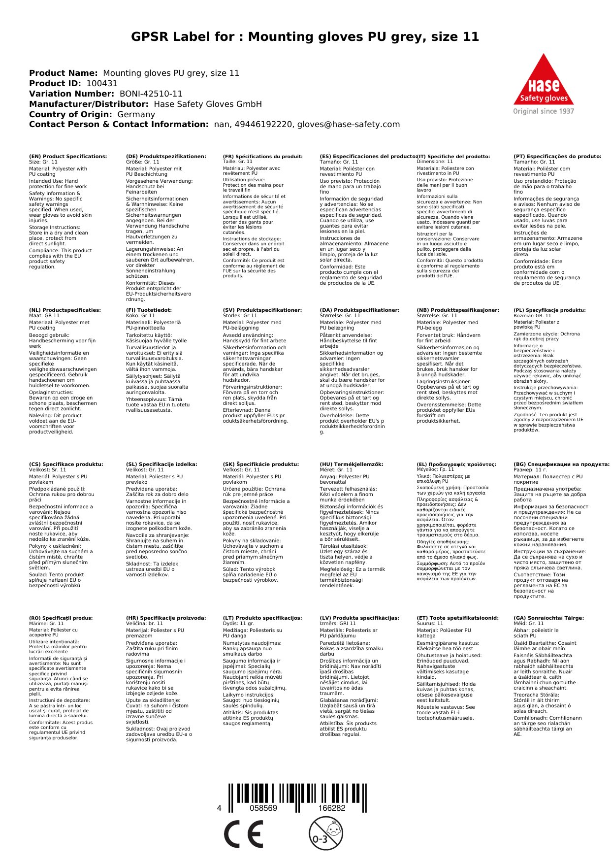 | Brand | Hase Safety Gloves GmbH |
