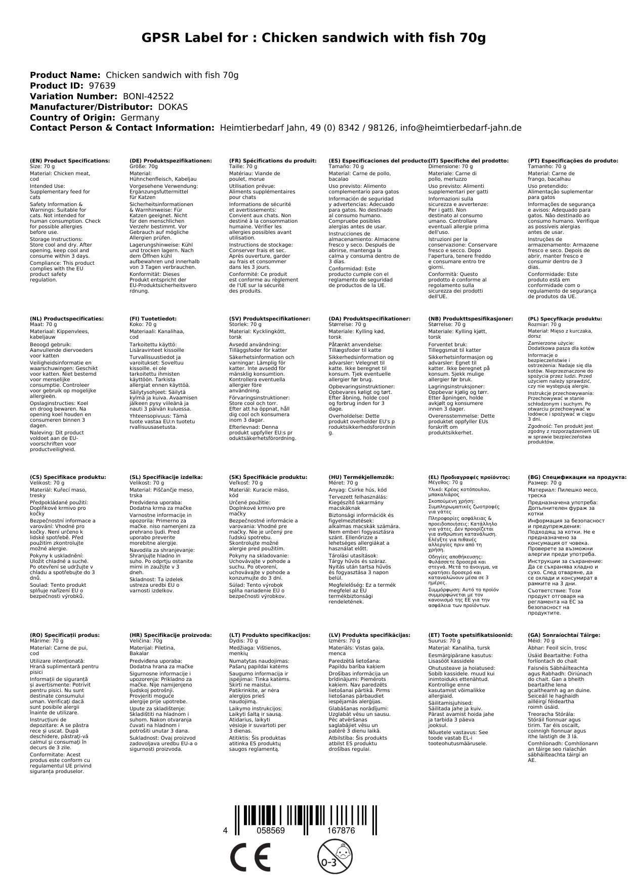 Stellen Sie eine Frage, um mehr über das Produkt zu erfahrenVerwöhnen Sie Ihre Katze mit dem unwiderstehlichen Geschmack von Hühnchen und Fisch!