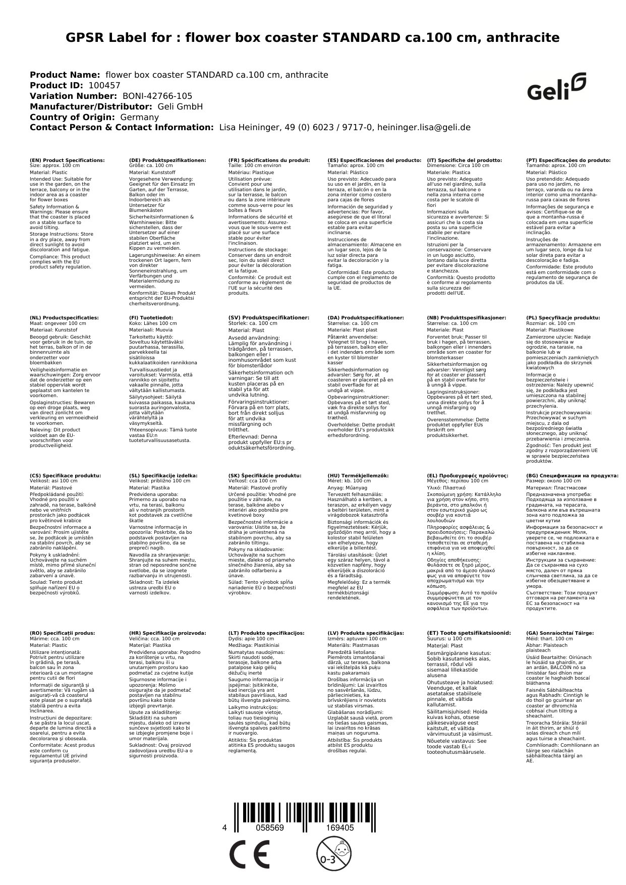 - Optik: In der Farbe Anthrazit passt der Untersetzer optisch zu vielen Blumenkästen und fügt sich harmonisch in Ihre Umgebung ein.