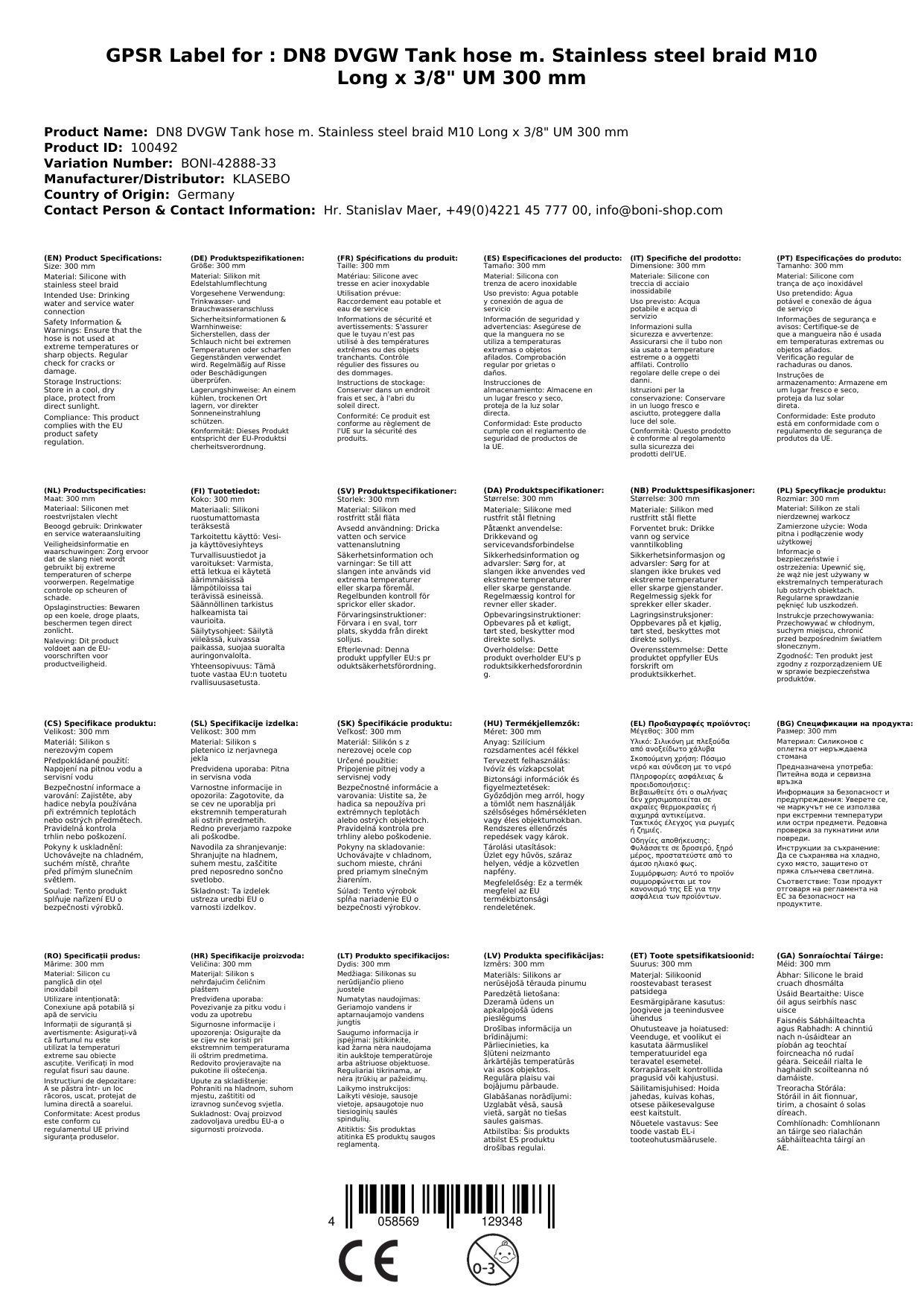 Stellen Sie eine Frage, um mehr über das Produkt zu erfahrenUnser Panzerschlauch mit Edelstahlumflechtung ist ein lebensmittelechter, flexibler Silikonschlauch der nach DVGW zertifiziert wurde.