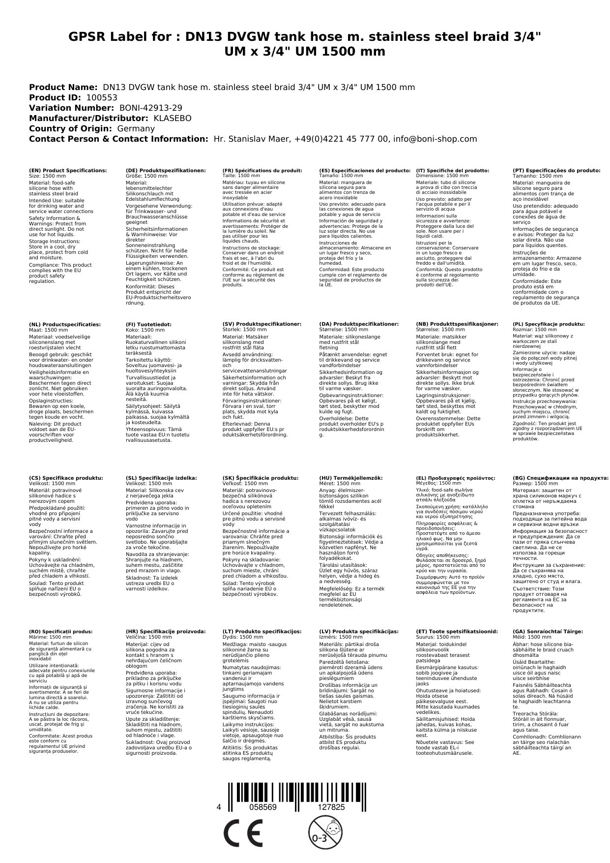 | Material | Edelstahlumflechtung AISI304L, Silikon Innenschlauch |