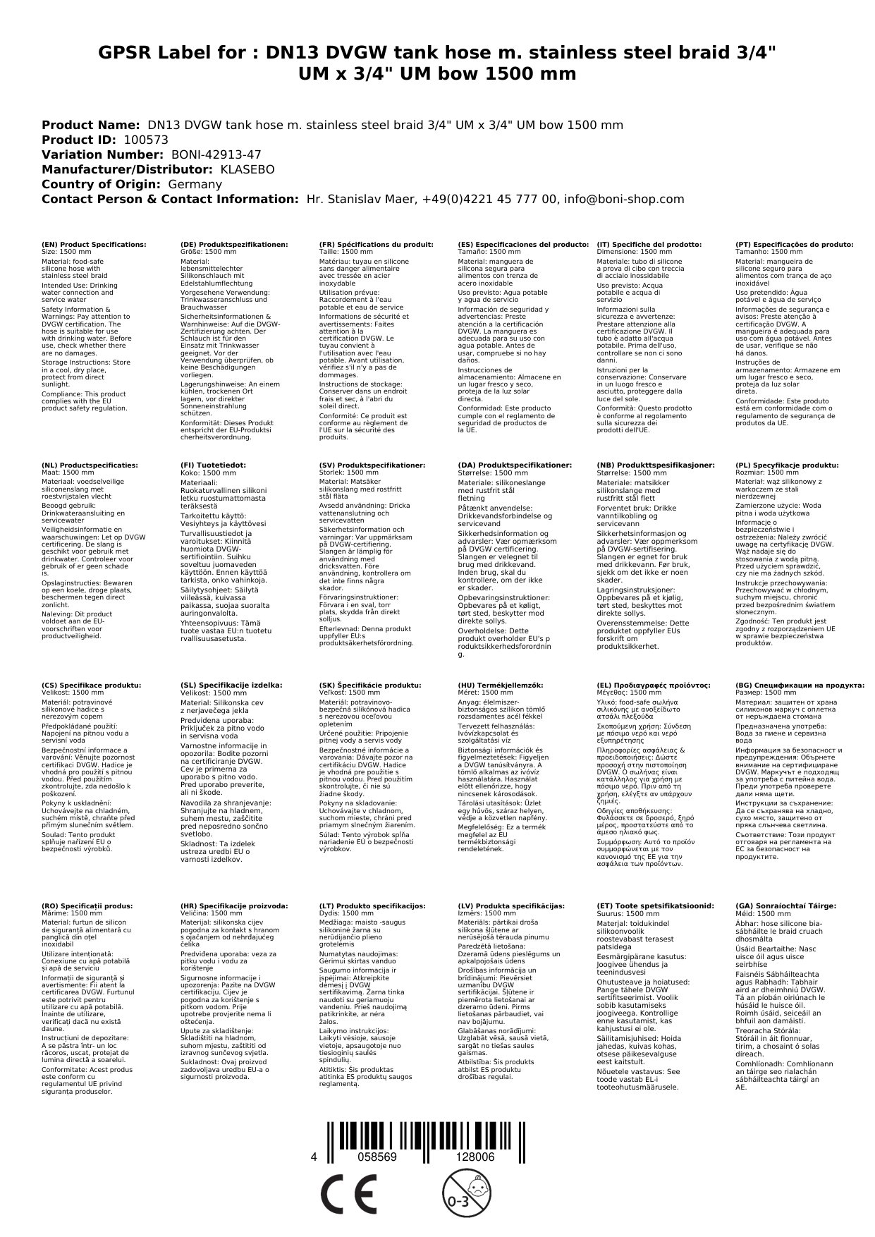This 3/4 inch stainless steel braided hose is engineered for both potable and utility water applications. Featuring a food-grade silicone inner tube and a robust stainless steel braid, it offers exceptional flexibility and hygiene. The included elbow fitting ensures easy connection in tight spaces. This hose is DVGW certified, giving you confidence in its safety and compliance.
