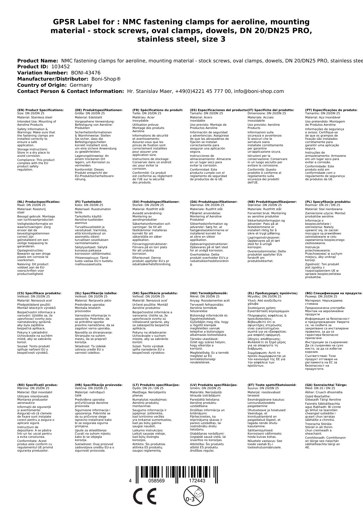 Stockschrauben M8, Montagematerial, Ovalschellen, Dübel S10, DN20 DN25, Edelstahl