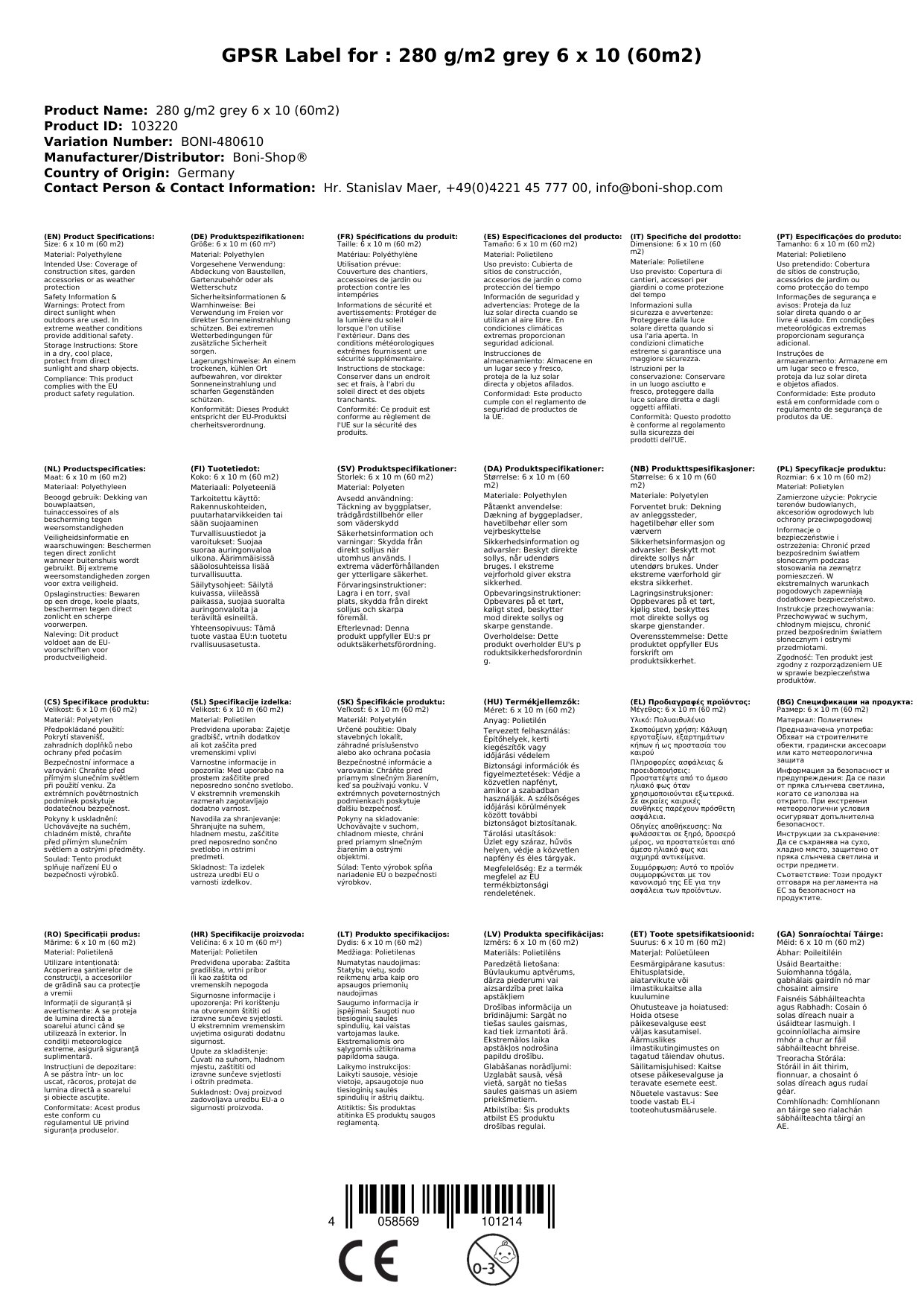 - PE-beschichtetes Bändchengewebe: Das Material ist extrem robust und langlebig, sodass Sie sich lange auf den Schutz verlassen können.