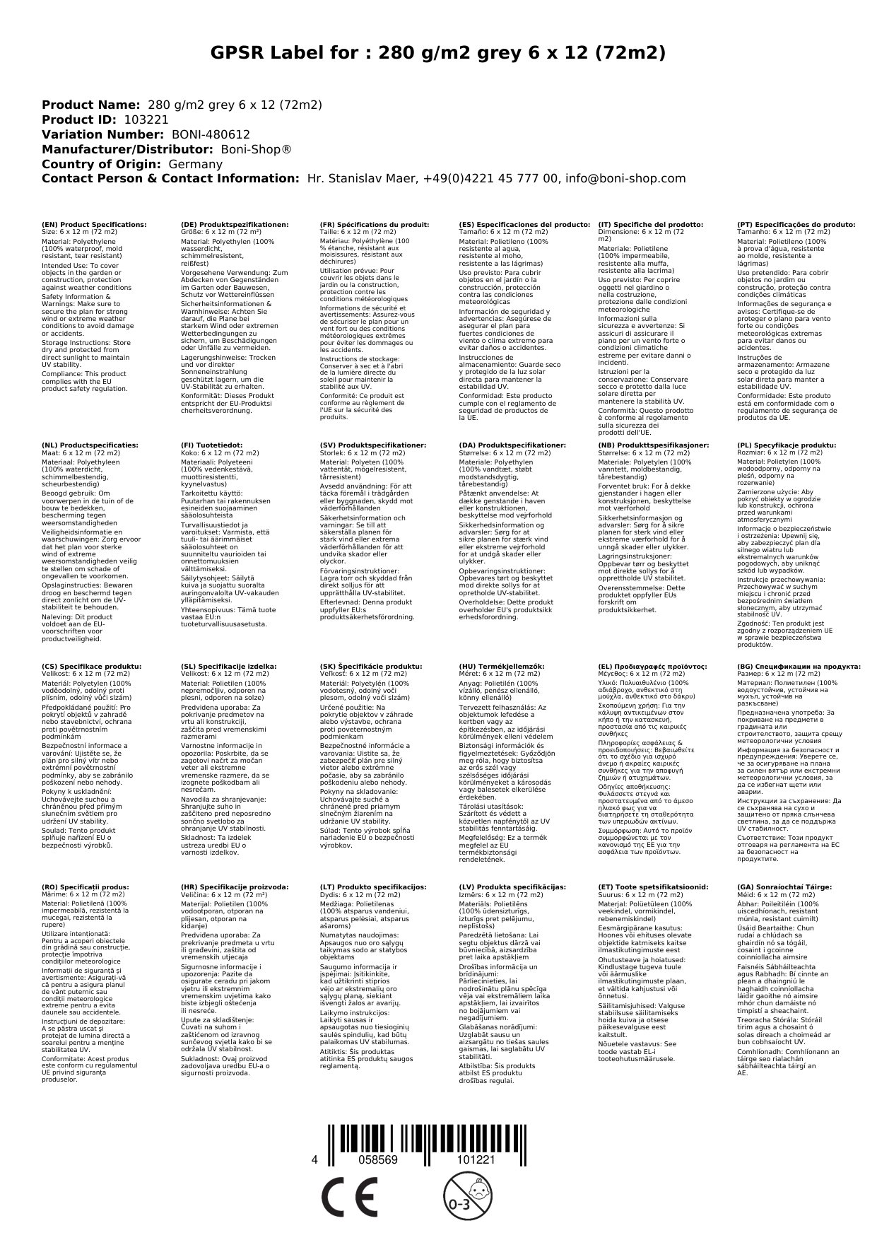 - PE-beschichtetes Bändchengewebe: Das robuste Material bietet dir einen zuverlässigen Schutz vor Beschädigungen und Witterungseinflüssen.