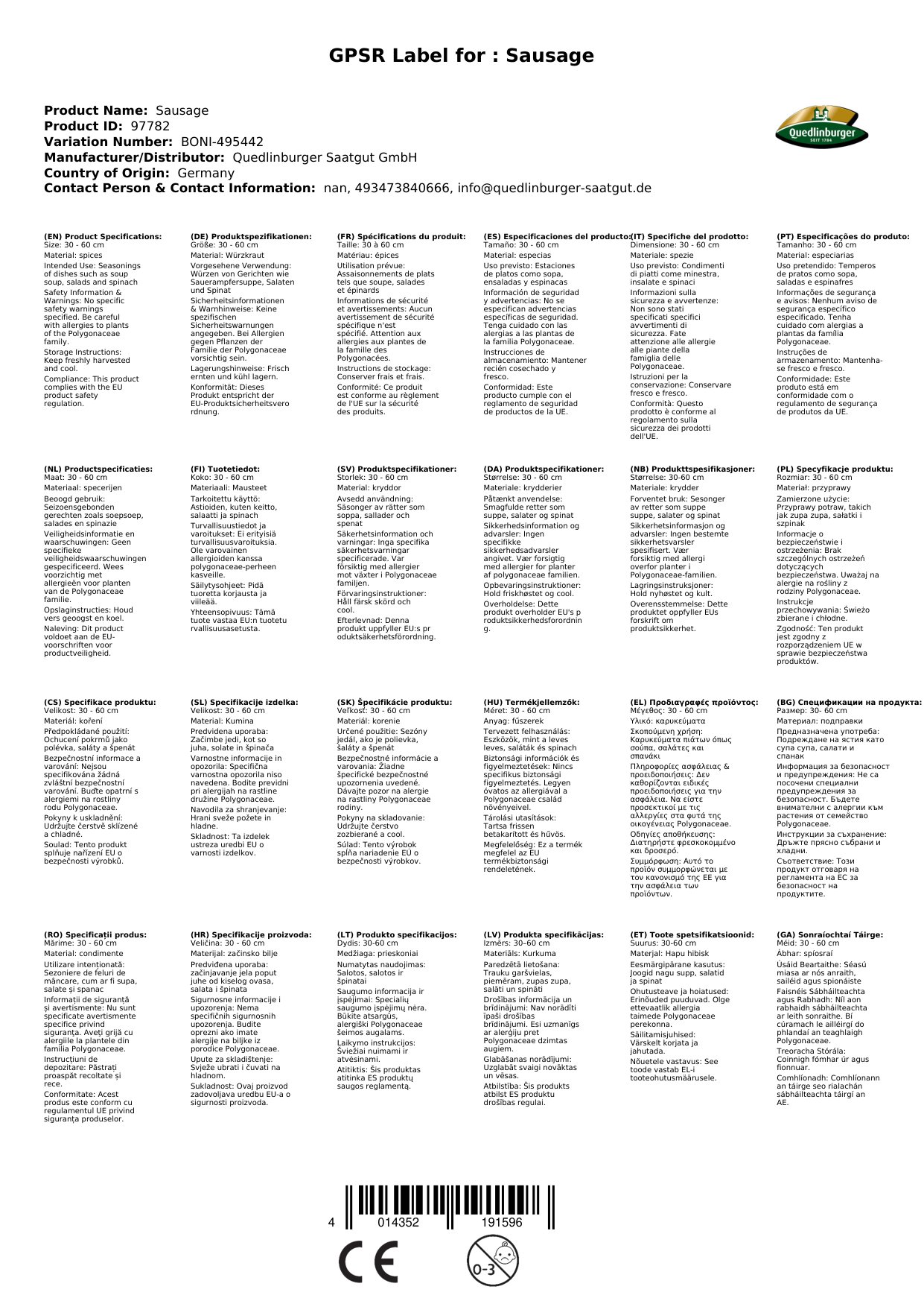 | Brand | Quedlinburger |