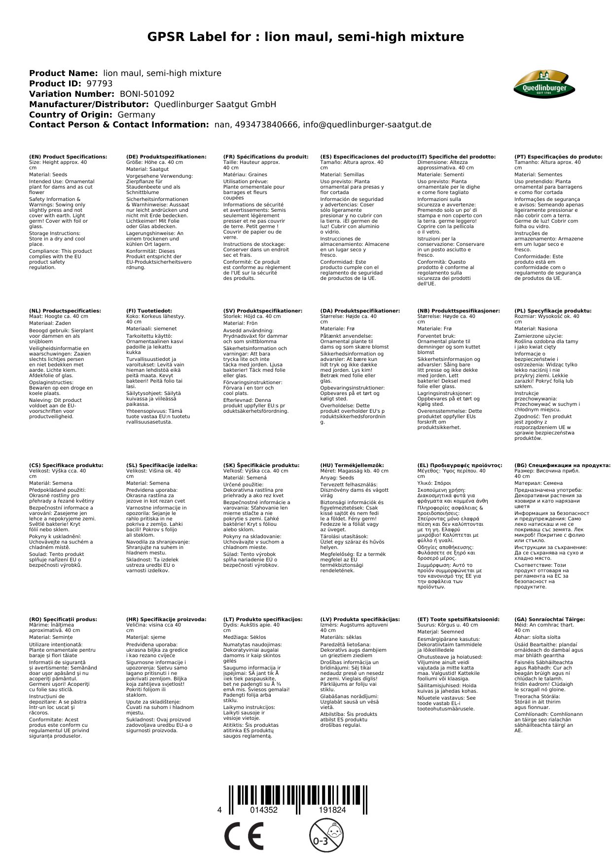 | Brand | Quedlinburger |