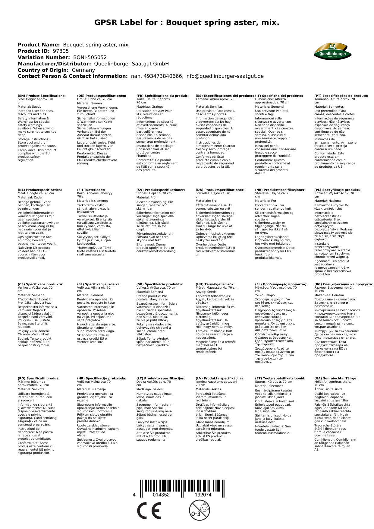 Die Straussenfederaster Mischung ist ideal für alle, die ihren Garten mit farbenfrohen und langlebigen Blumen bereichern möchten. Sie erreicht eine Höhe von etwa 70 cm und eignet sich hervorragend für Beete, Rabatten und als Schnittblume. Die einjährige Natur der Aster sorgt für eine unkomplizierte Pflege und eine reiche Blüte von August bis September. Warum das für Sie wichtig ist: Mit dieser Asternmischung können Sie Ihren Garten einfach und effektiv verschönern und gleichzeitig lange Freude an den farbenprächtigen Blüten haben.