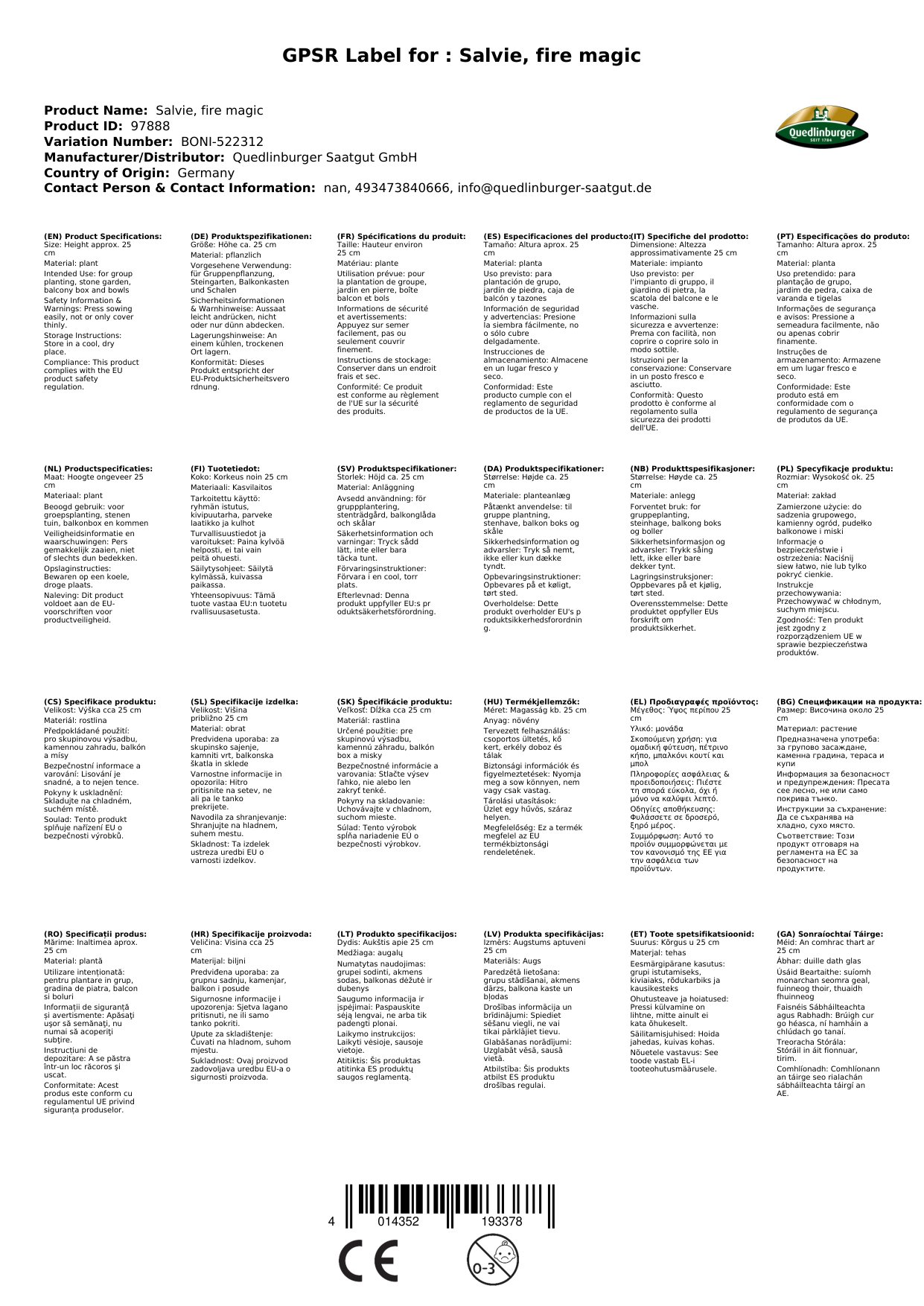 Der Salbei Feuerzauber ist eine einjährige Pflanze, die mit ihren scharlachroten Blütenrispen jeden Garten verschönert. Mit einer Höhe von ca. 25 cm eignet sie sich hervorragend für Balkonkästen, Steingärten und Schalen. Die Pflanze ist ein Lichtkeimer und benötigt einen warmen, sonnigen Standort. Warum das für Sie wichtig ist: Sie erhalten eine pflegeleichte und frühblühende Pflanze, die Ihren Außenbereich in ein farbenfrohes Paradies verwandelt.
