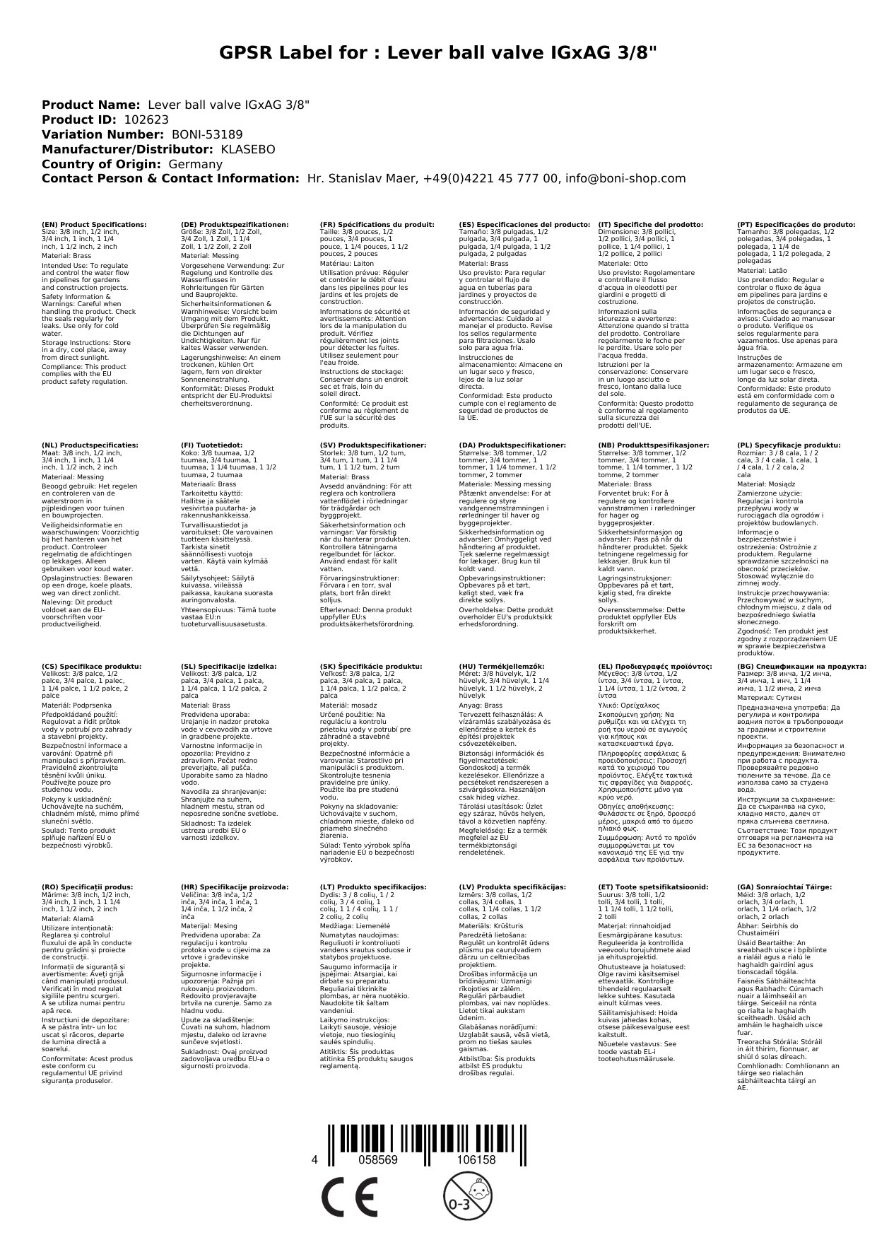 Kugelhahn 3/8 Zoll, Hebel Kugelhahn, Messing, IG AG
