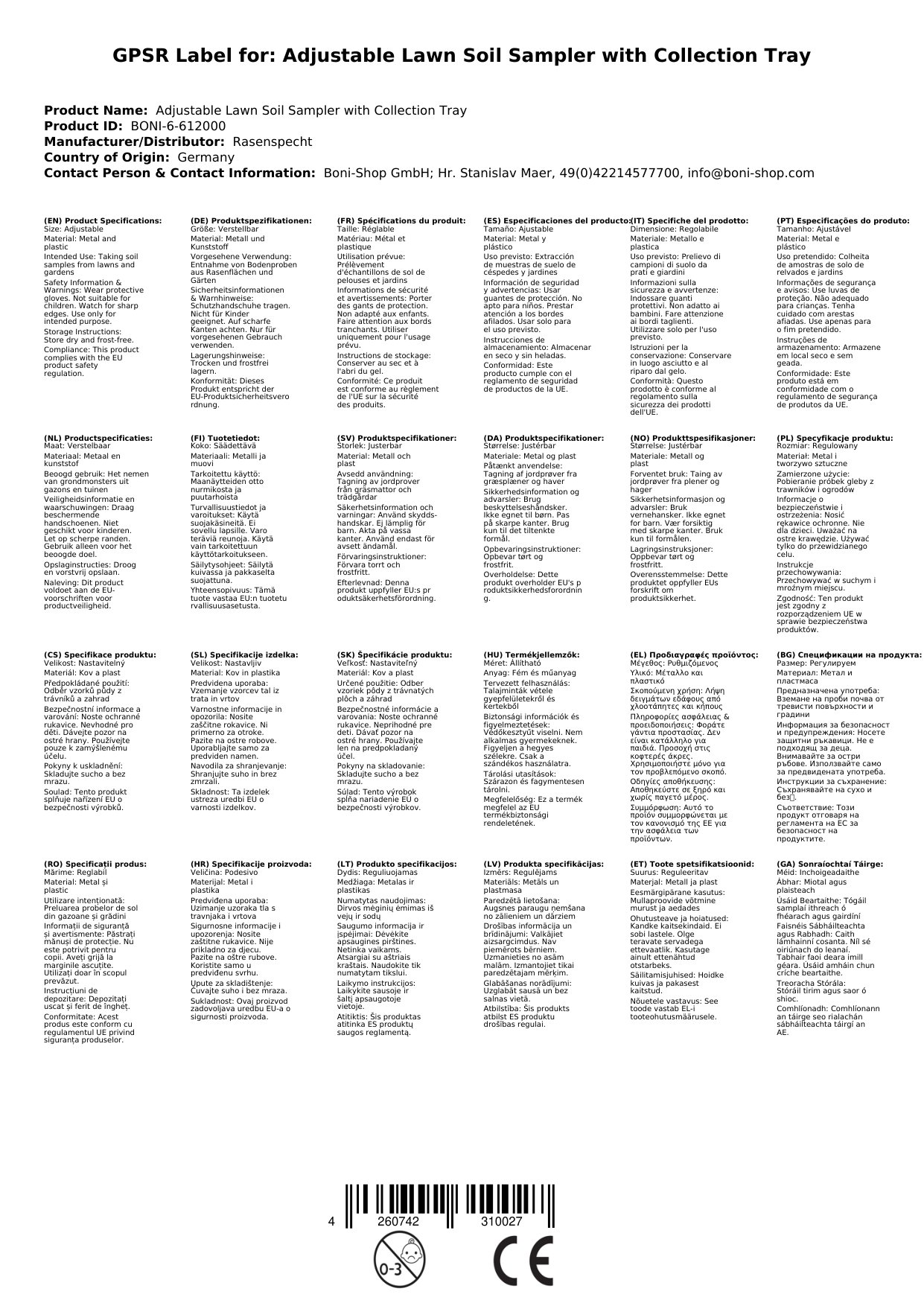 Der Rasenspecht ermöglicht eine einfache und effiziente Entnahme von Bodenproben zur Analyse Ihres Rasens. Die robuste Stahlkonstruktion und die mitgelieferte Auffangwanne sorgen für eine saubere und präzise Probenentnahme. Warum das für dich wichtig ist: Du erhältst zuverlässige Ergebnisse, um deinen Rasen optimal zu pflegen.