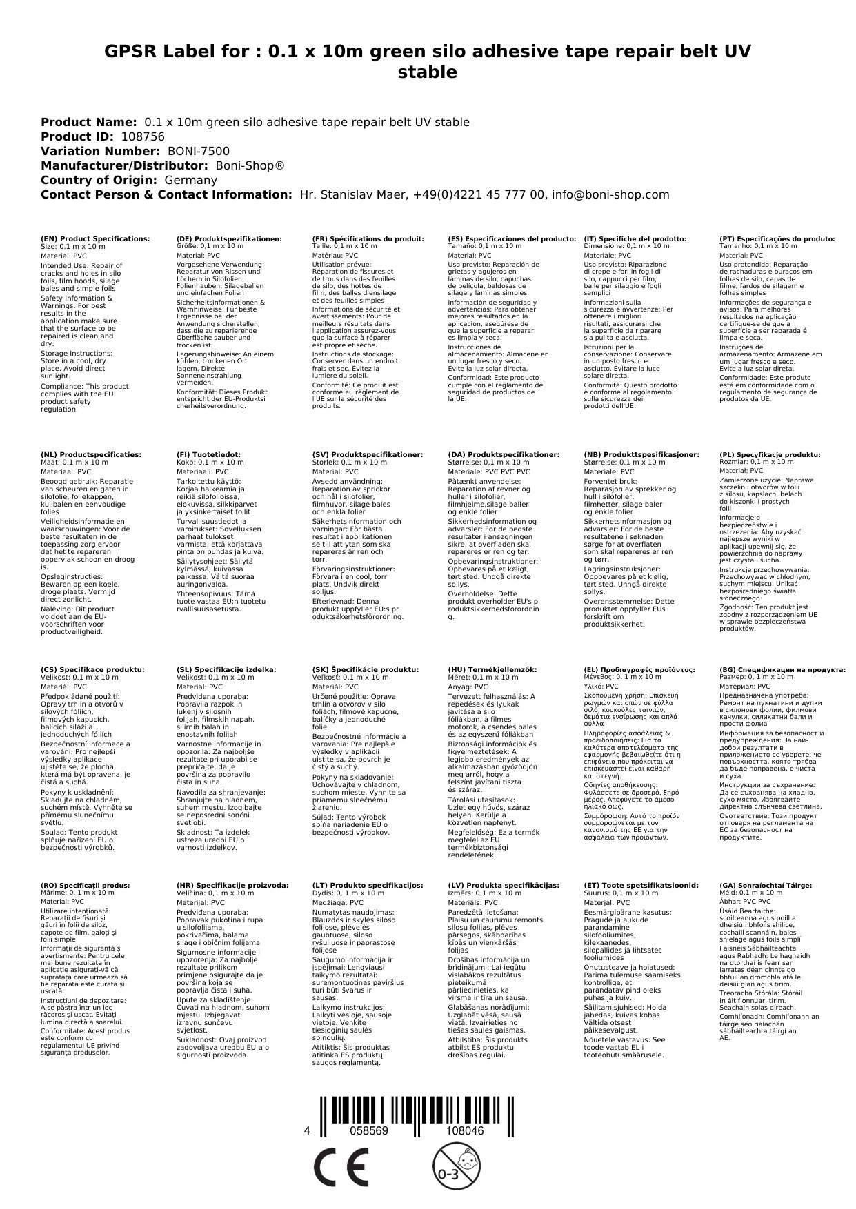 Нашата ремонтна лента за силаж предлага надеждна защита и бързо решение за вашите нужди. С размери 0,1 x 10 метра и UV устойчивост, тя е идеална за всякакви атмосферни условия. Високата ѝ адхезия и устойчивост на разкъсване гарантират дълготраен ремонт. Спестявате време и усилия, като предотвратявате по-нататъшни щети и загуби.