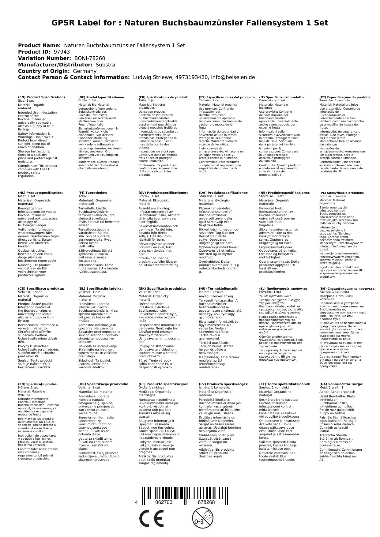 - Wiederbefüllbar und universell einsetzbar – auch als Wespen oder Fruchtfliegenfalle