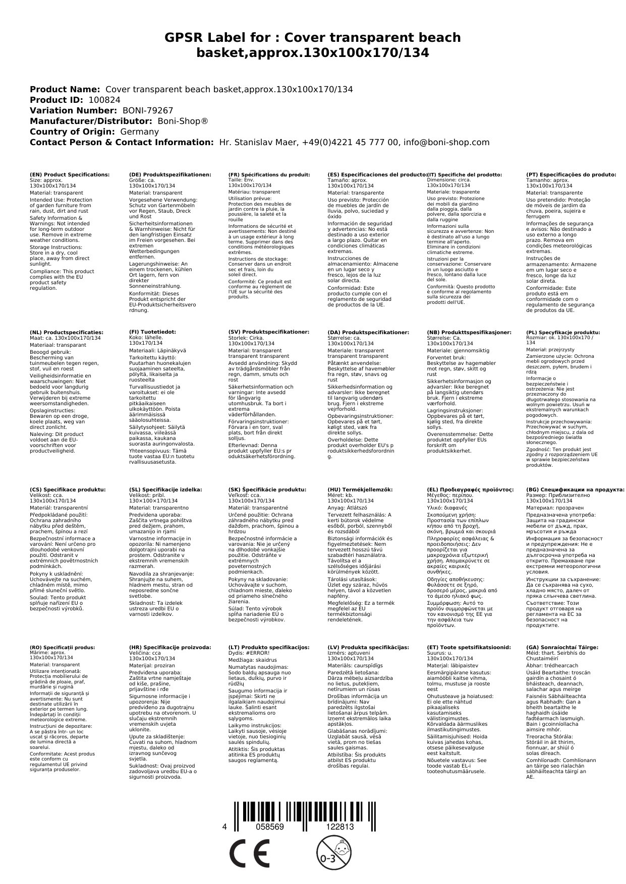 Strandkorb Schutzhülle, transparent, 130x100x170/134cm, Boni