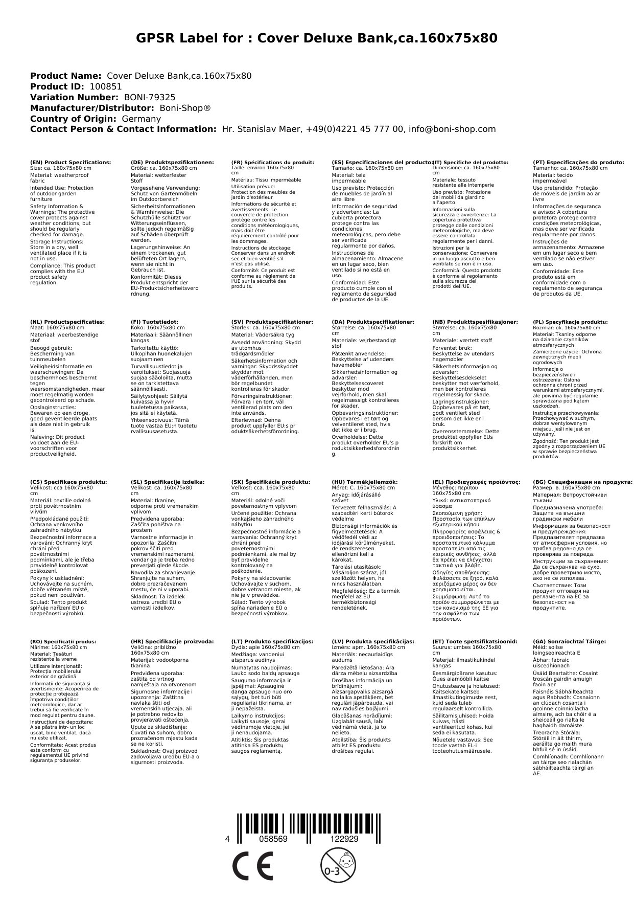 Die Schutzhülle ist primär für Gartenbänke mit den Maßen 160 x 75 x 80 cm konzipiert, kann aber eventuell auch für ähnliche Möbelstücke verwendet werden.