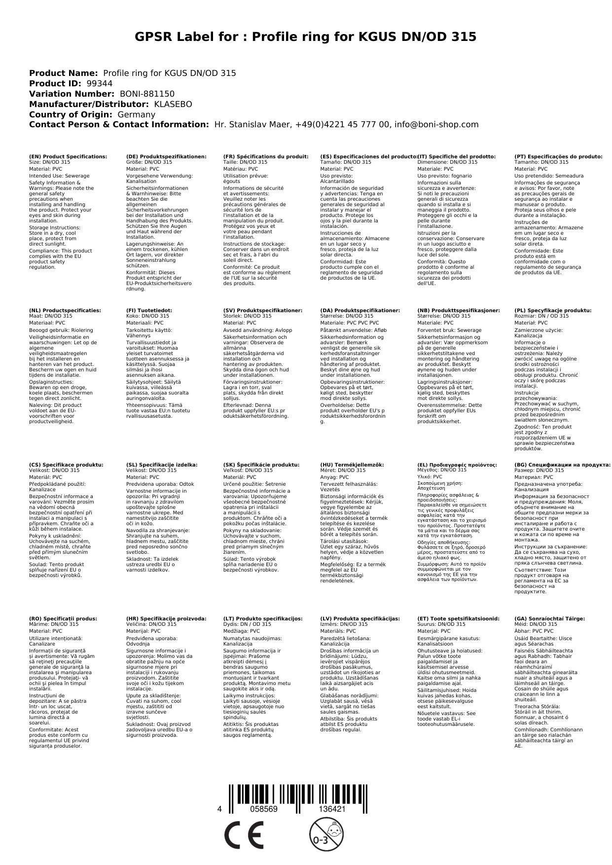 Ja, der Profilring ist für alle KG Rohre mit der Nennweite DN 315 geeignet, die der DIN EN 1401-1 entsprechen.