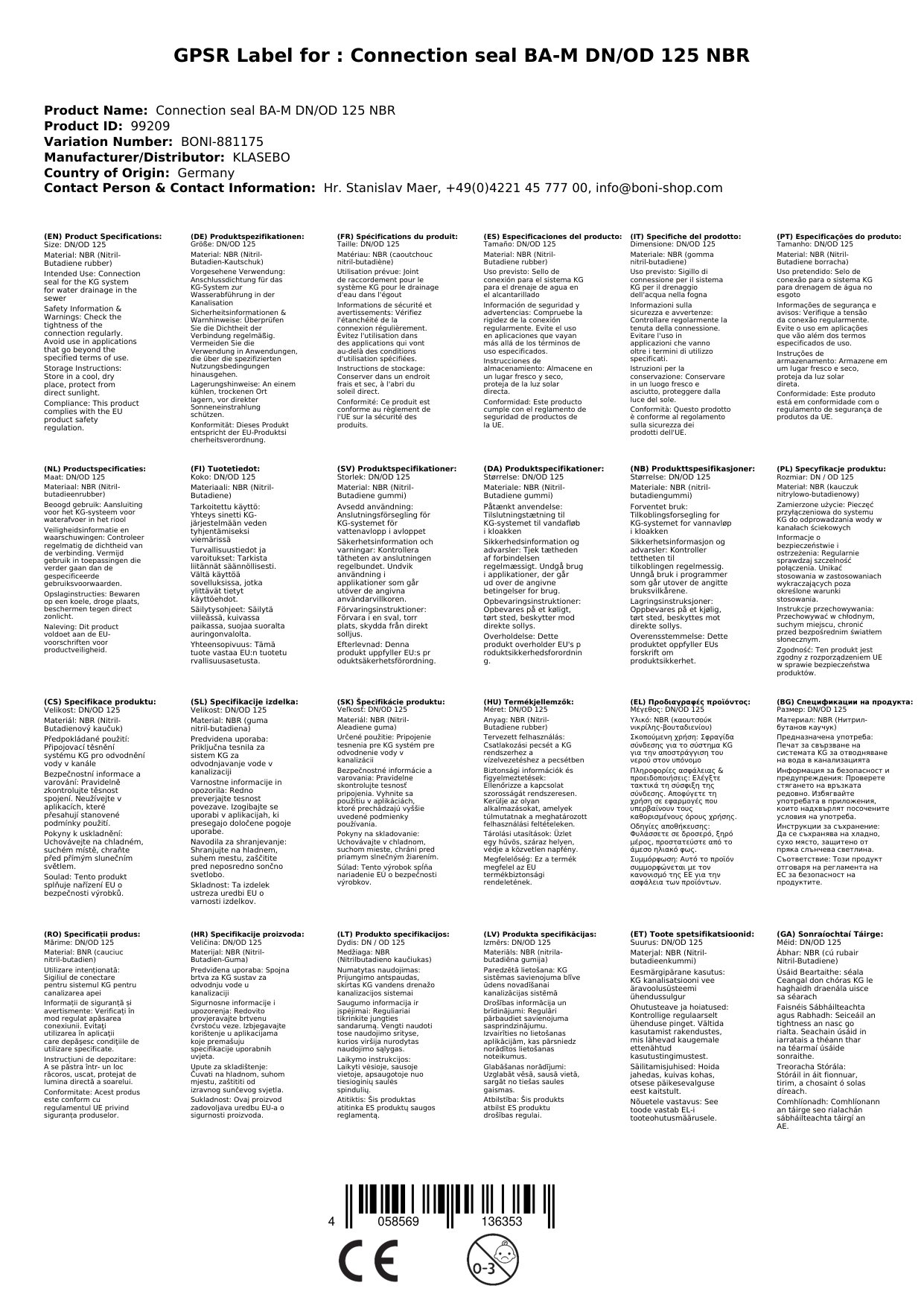Diese Dichtung ist speziell für KG-Rohre DN 125 konzipiert. Für andere Rohrsysteme bieten wir separate Dichtungen an.
