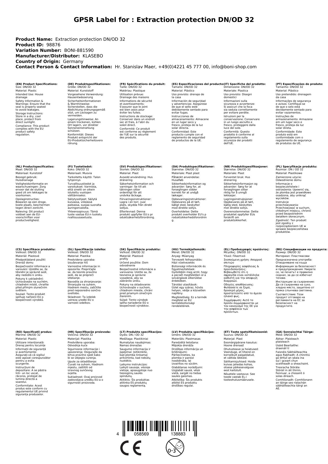 | Brand | KLASEBO |